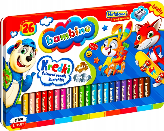 Просматривая «Карандаши с толстыми бамбино в металлической коробке и подошва темпе из 26 цветов», вы можете быть уверены, что данный товар из каталога «Карандаши» будет доставлен из Польши и проверен на целостность. В цене товара, указанной на сайте, учтена доставка из Польши. Внимание!!! Товары для Евросоюза, согласно законодательству стран Евросоюза, могут отличаться упаковкой или наполнением.