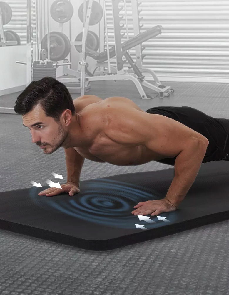 Универсальный широкий гимнастический коврик из толстого материала NBR является незаменимой опорой при различных видах упражнений, выполняемых в положении лёжа. Он будет хорошо работать во время занятий йогой, фитнесом или лечебно-реабилитационными занятиями.