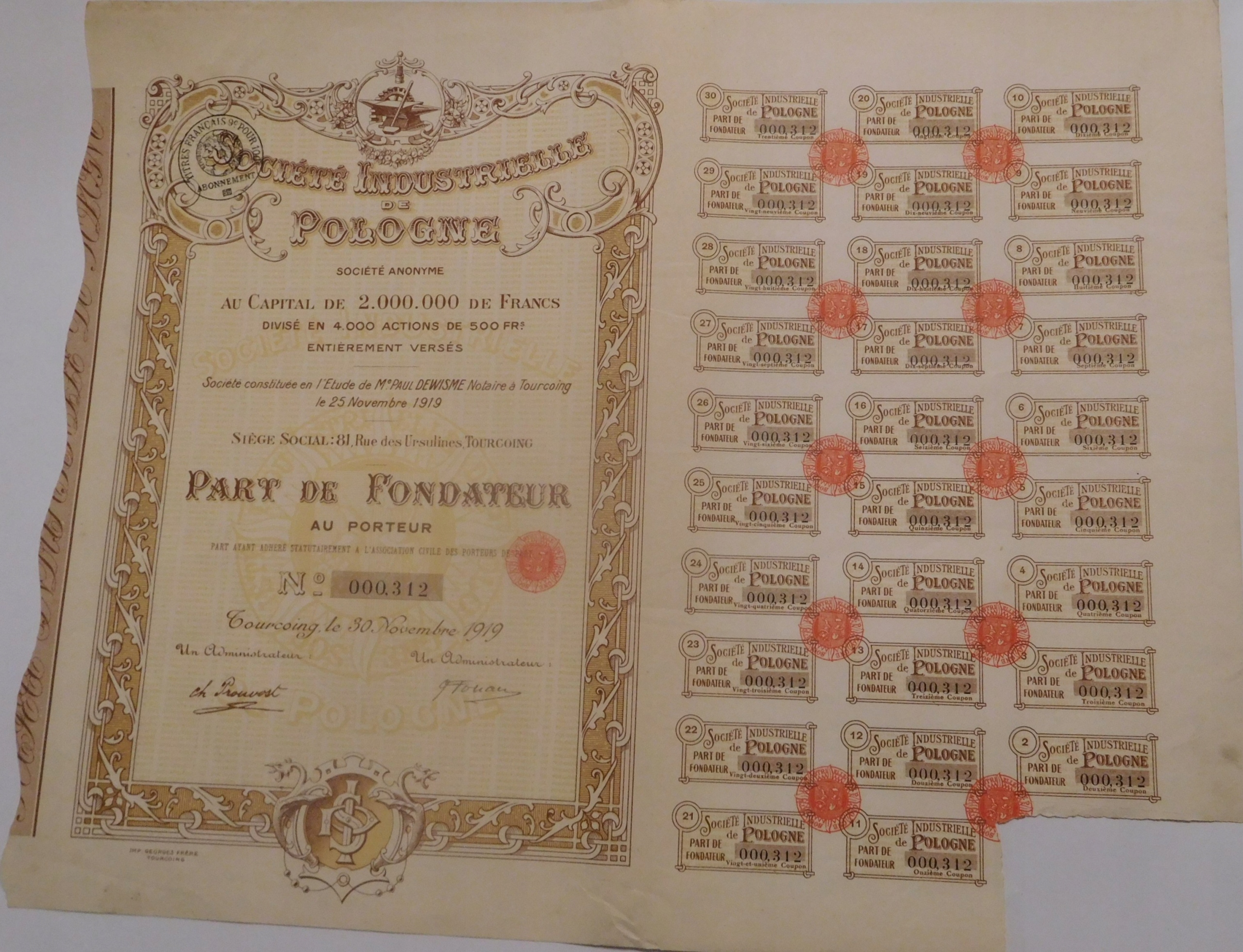 !TOWARZYSTWO PRZEMYSŁU POLSKIEGO TOURCOING! 1 UDZIAŁ! NISKA EMISJA! 1919!
