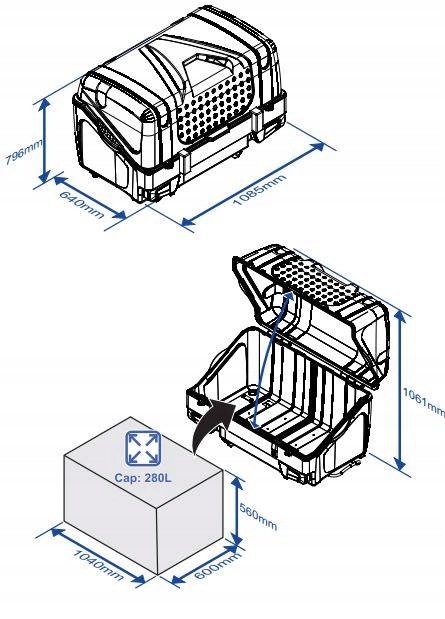 - Внутренние размеры: 1040 x 560 x 600 мм