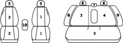 Крышки сшиты точно под конфигурацией сидений в данной модели автомобиля, каждый элемент сшит отдельно - благодаря этим обложкам сохранить полную функциональность
