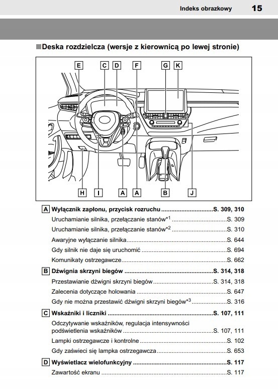 Руководство пользователя Toyota содержит все версии оборудования и полезную информацию о том, как эффективно и безопасно использовать автомобиль, например. - индикаторы, контрольные лампы, открытие и закрытие - освещение и обзорность, сиденья, отсеки для хранения вещей, отопление, вентиляция, кондиционирование - вождение, советы по эксплуатации, обслуживание автомобиля - уровни жидкостей, проверка и доливка, аварийные операции, замена колес, предохранители, замена лампочек - технические данные... и многое другое, что дает путешественникам ощущение безопасности и комфорта. Польское законодательство обязывает продавца приложить к товару инструкцию по эксплуатации автомобиля на польском языке. Руководство пользователя автомобиля новое, на польском языке.