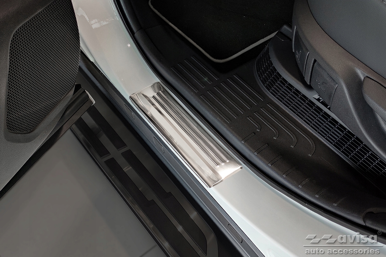 Вы часто путешествуете с семьей? Или, может быть, кто-то поцарапал ваши дверные пороги, и маляр взимает большую плату за ремонт? Накладки на пороги — идеальное решение для вас и вашего автомобиля. Они выполняют как защитную функцию, так и отлично смотрятся в качестве декоративного элемента. Характеризуется устойчивостью к погодным условиям (температура -40°С/+50°С), посещению мойки (влажность) и т. д. Это не типичные пороговые планки, поскольку нержавеющая сталь, из которой они изготовлены, дополнительно сатинирована. -законченный. Благодаря брашированию их отделка идеально сочетается между зеркальным оттенком и глубоким матовым. Стандартной особенностью накладок также является защита края порога посредством специально профилированного изгиба.