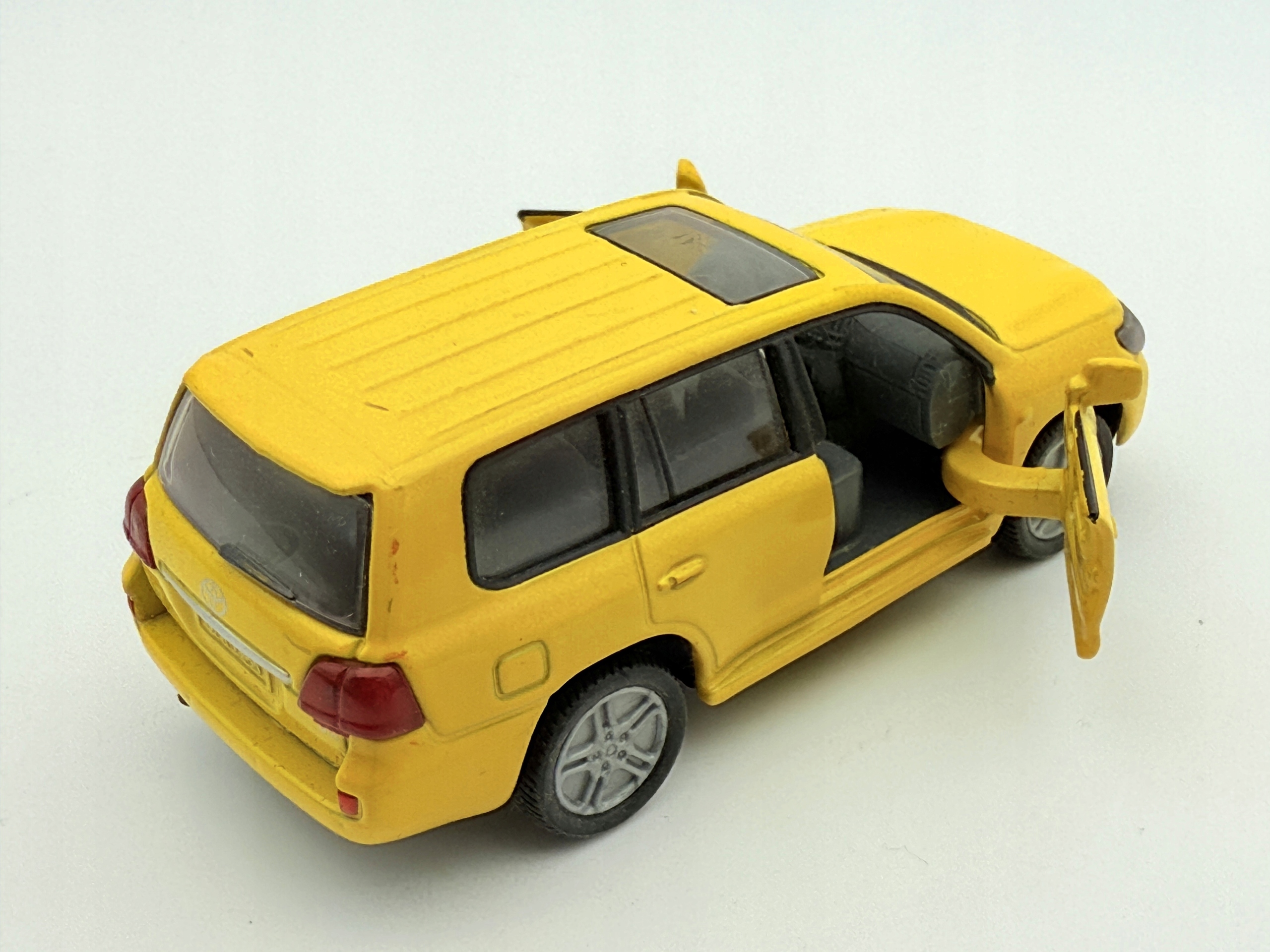 Модель основана на настоящем автомобиле Toyota Land Cruiser v8 Off -Hroad. Цвета однородные, желтые с серебряными деталями. Модель не принадлежит к конкретной тематической серии, но представляет собой современный, солидный дизайн автомобилей вне -дороги.
