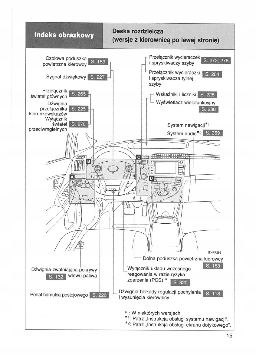 Руководство для владельца Toyota содержит все версии оборудования и полезную информацию о том, как эффективно и безопасно использовать автомобиль, например - индикаторы, контрольные лампы открытия и закрытия - освещение и обзорность, сиденья, отсеки для хранения вещей, отопление, вентиляция, кондиционирование воздуха. - советы по вождению, эксплуатации, обслуживанию автомобиля - уровни жидкостей, проверка и доливка, аварийные операции, замена колес, предохранителей, замена лампочек - технические данные... и многое другое, что дает путешественникам ощущение безопасности и комфорта.Польское законодательство обязывает продавца приложить к . Руководство пользователя автомобиля новое, на польском языке.