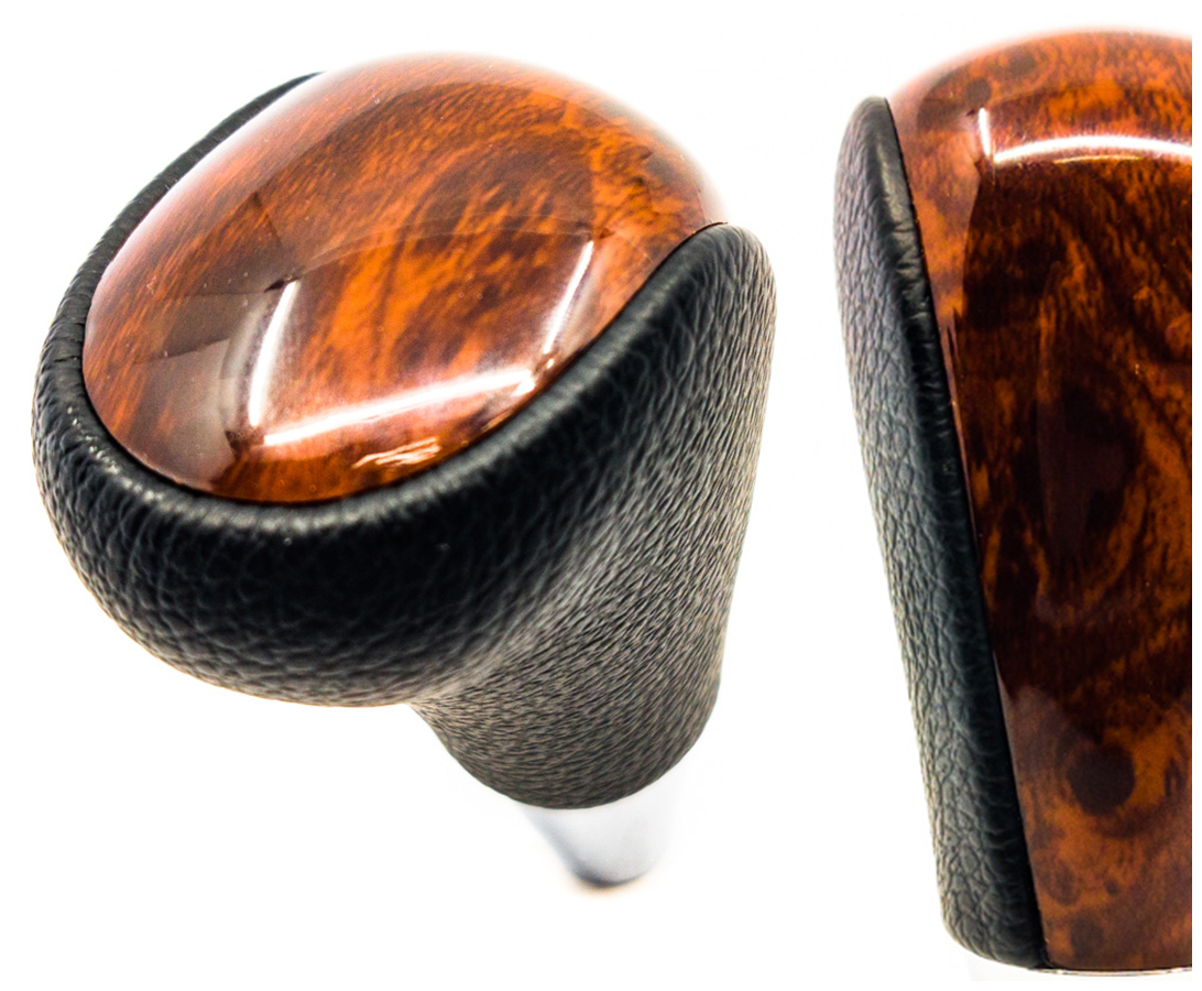 красиво сшивая кожу с элементами хрома и имитации древесины