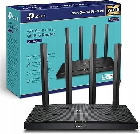 - Технология Wi -Fi 6 - Archer AX18 оснащен новейшей беспроводной технологией, Wi -Fi 6, обеспечивая более высокую скорость, более высокую емкость и меньшую перегрузку сети