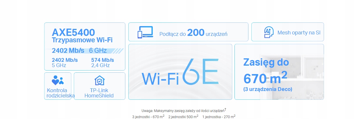 Просматривая «TP-Link Deco XE75(1-pack) Mesh Router AXE5400», вы можете быть уверены, что данный товар из каталога «[rubrica_name]» будет доставлен из Польши и проверен на целостность. В цене товара, указанной на сайте, учтена доставка из Польши. Внимание!!! Товары для Евросоюза, согласно законодательству стран Евросоюза, могут отличаться упаковкой или наполнением.