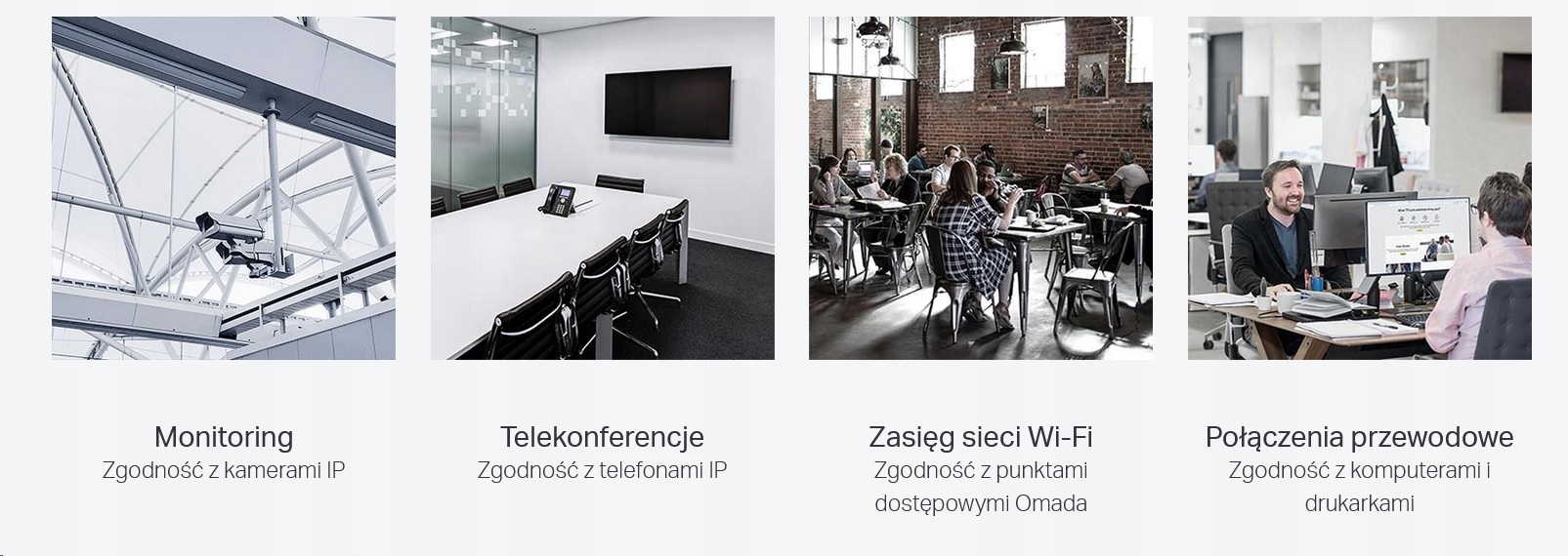 Соответствие стандартам 802.3af/at PoE+ означает, что каждый порт PoE имеет до 30 Вт мощности. Общая мощность PoE* до 65 Вт для коммутатора, оснащенного 4 гигабитными портами PoE+, является идеальным решением, среди прочего: для систем мониторинга офисов, общежитий и малого бизнеса. Устройство полностью совместимо с IP-камерами, точками доступа, IP-телефонами, компьютерами, принтерами и т. д.