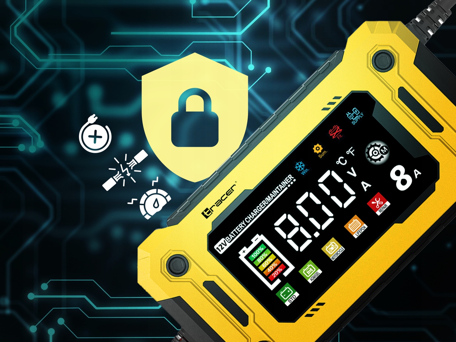 ⭐ Tracer DT128 — это современный и интеллектуальный выпрямитель на 12 В, предназначенный для пользователей, которые ожидают высочайшей эффективности, безопасности и универсальности.