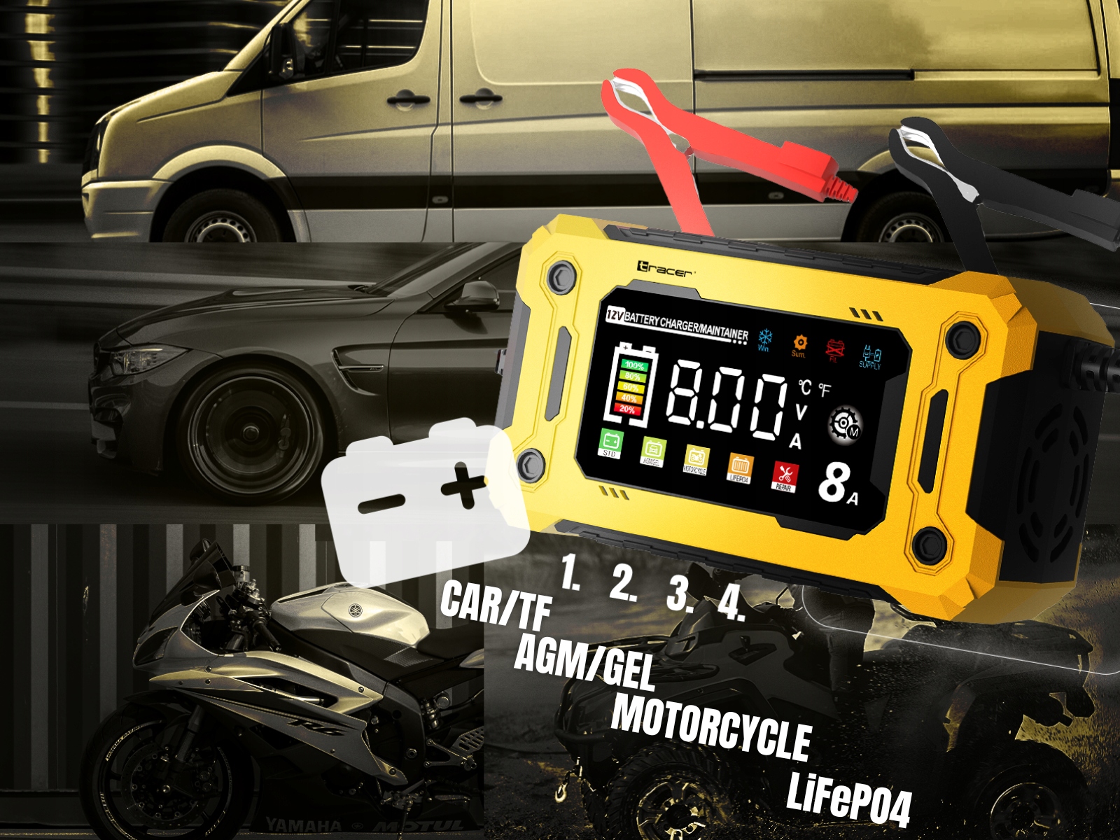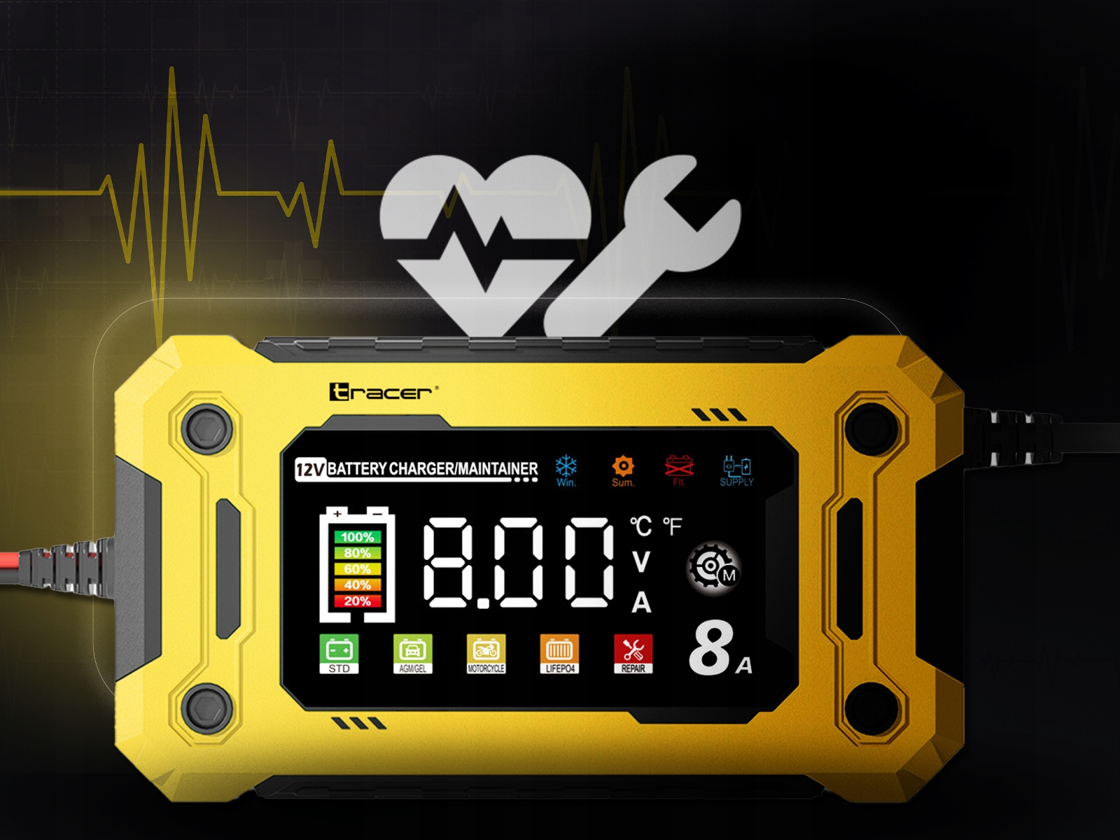TRACER DT128 Интеллектуальный выпрямитель 12 В 9-ступенчатый AGM GEL LiFePO4 8A 12 В