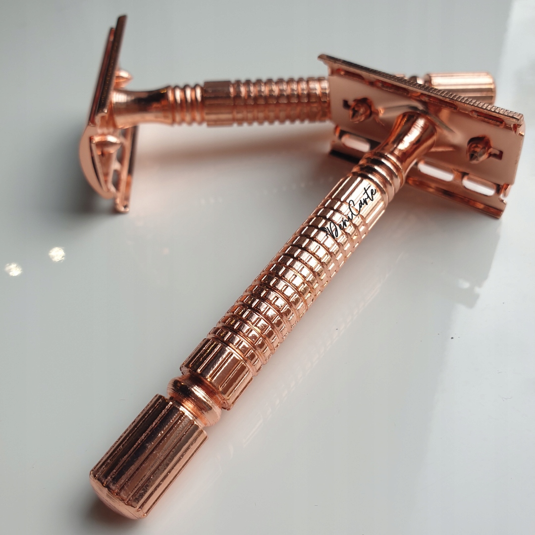 ✅Традиционная бритва с лезвиямииз металла. Использование одного лезвия безопаснее для кожи и предотвращает засорение бритвы. Поскольку он двусторонний, вы можете просто начать бриться другой, ранее неиспользованной стороной.