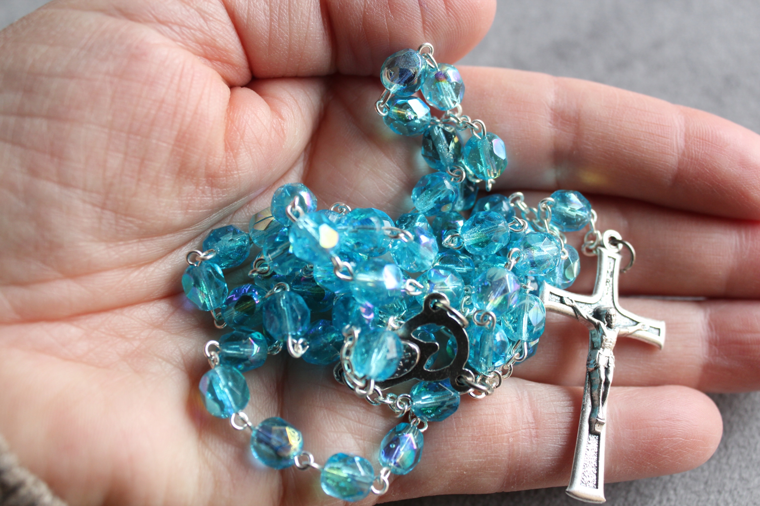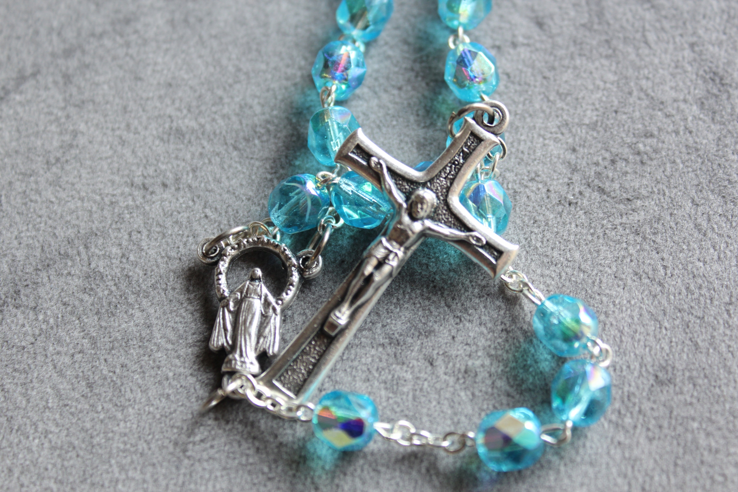 Традиційна вервиця для причастя. Непорочний блакитний кристал