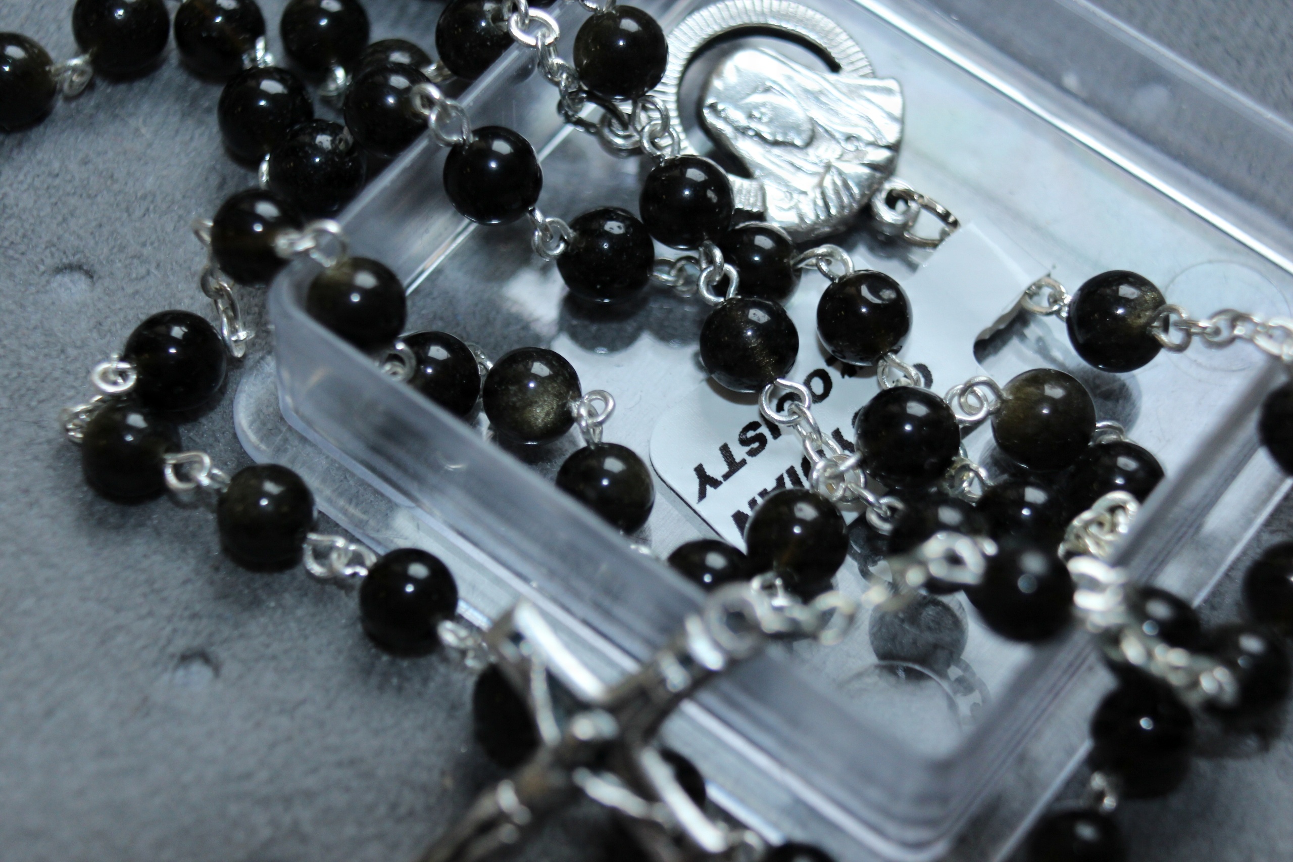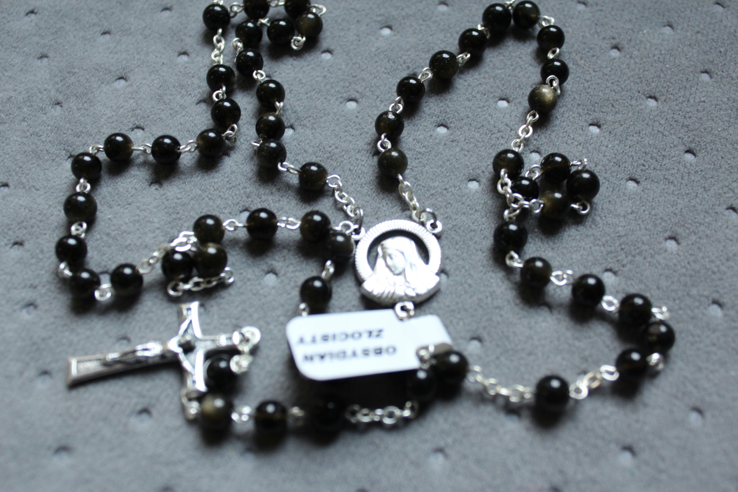 Традиційні чотки з вулканічного скла (каміння), золотого обсидіану