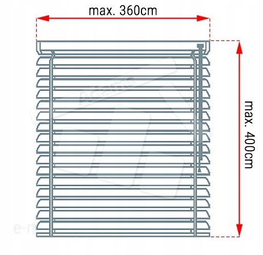 Алюминиевые жалюзи производятся до размера. максимальная ширина составляет 360 см, а высота - 400 см.
