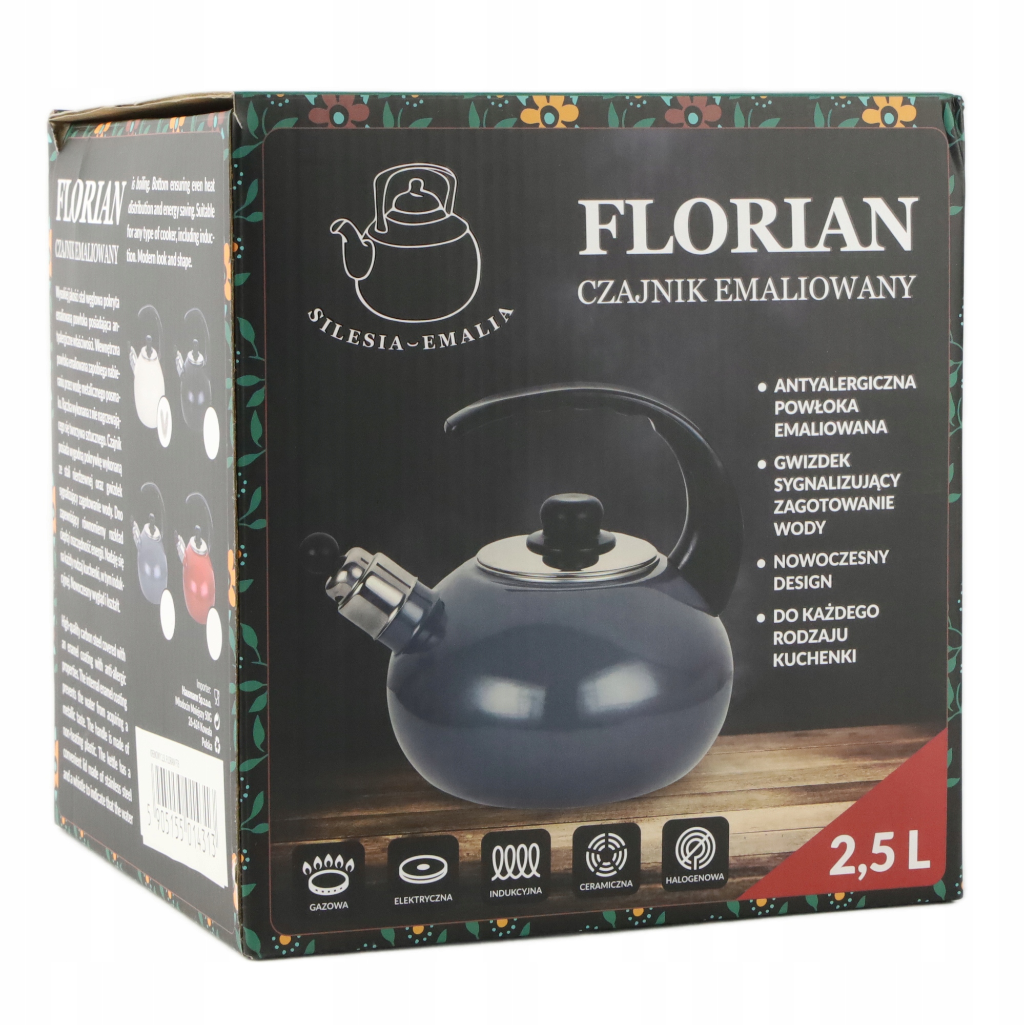 ТРАДИЦИОННЫЙ ЭМАЛЬНЫЙ ЧЕРНЫЙ ЧАЙНИК СО СВИСТОКОМ, СТАЛЬ 2,5 Л, ГАЗОВАЯ ИНДУКЦИЯ