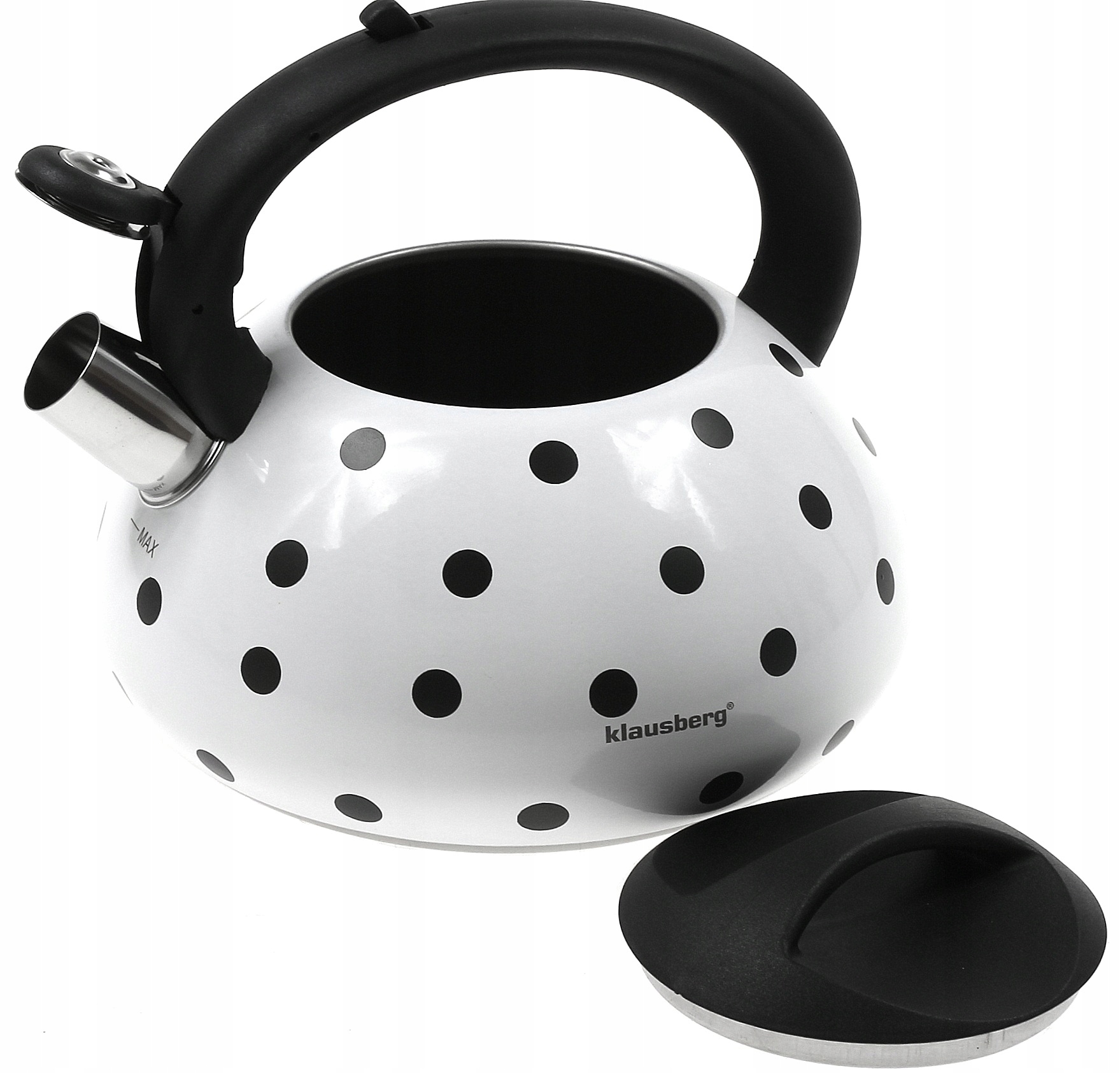 окрашенная стальная чайник 3.0L Klausberg из нержавеющей стали. Под воздействием тепла декоративный рисунок меняет цвет. Точки становятся красочными и остаются красочными, пока вода не остынет