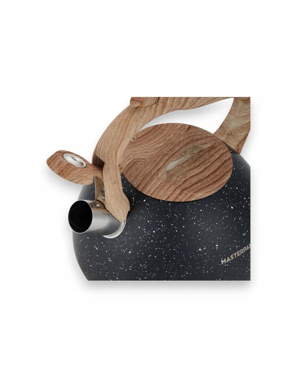 Чайник 2,8 л со свистком, черный, с ручкой цвета дерева, газовый индукционный стильный стиль