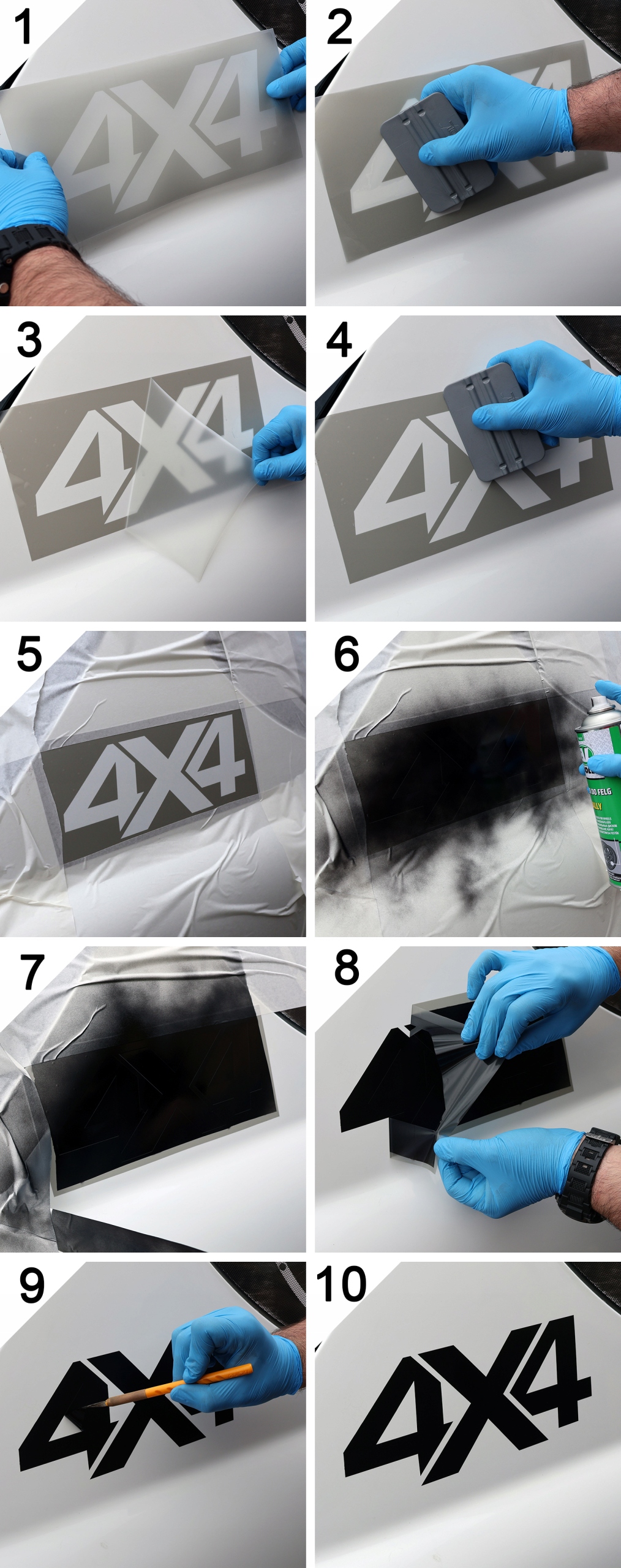 Где мы можем использовать шаблон? На кузове, окнах, мебели, столешницах, всех лакированных поверхностях, стенах... Фактически на всем гладком или слегка шероховатом (например, поверхность кемперов), сухом и обезжиренном.
