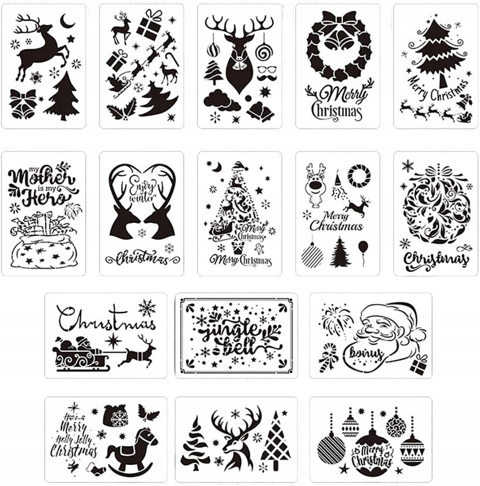 Трафареты в различных стилях: упаковка содержит 16 шаблонов рождественских трафаретов в разных стилях, например, буквы, рождественская елка, снежинка, олень. , Санта-Клауса, Снеговика и т. д., которые вы можете использовать.