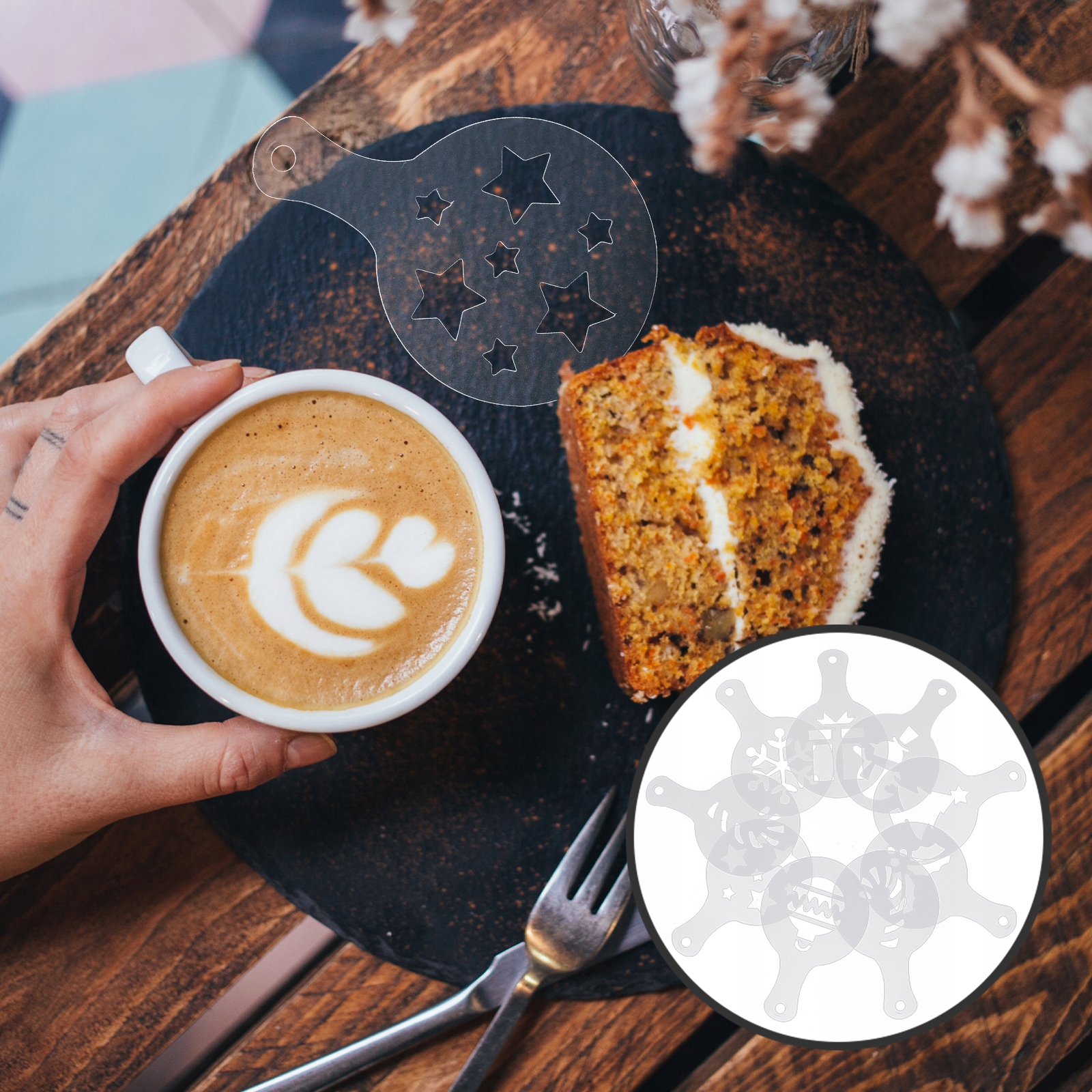 Практичные и декоративные кофейные трафареты гибкие и надежные в использовании, легко чистятся и сохнут.
