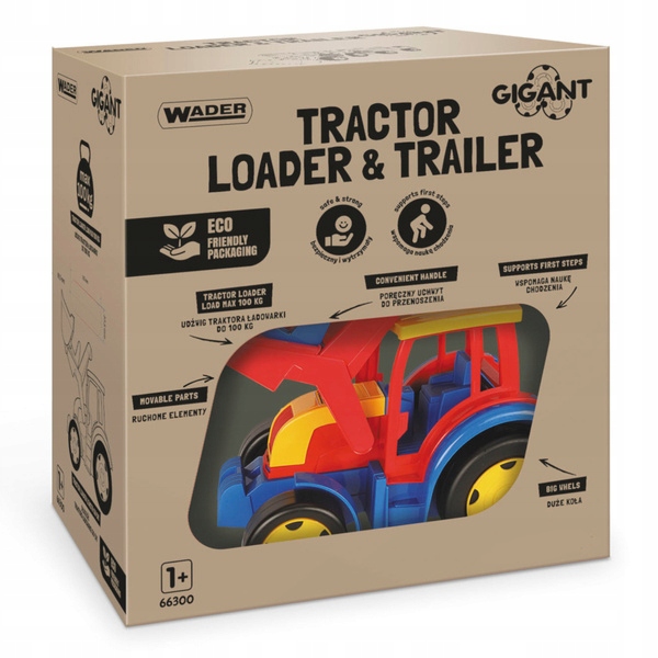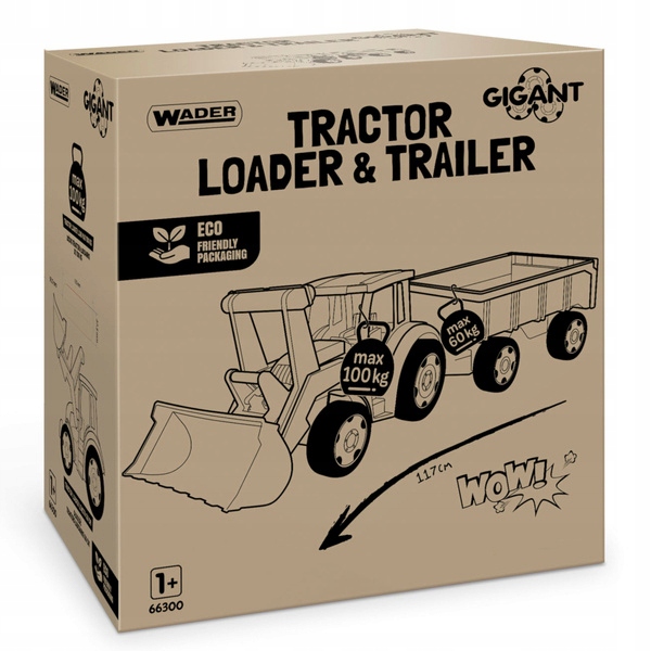 Тракторный погрузчик Gigant с прицепом изготовлен из высококачественного, безопасного и нетоксичного материала, устойчивого к любым погодным условиям.