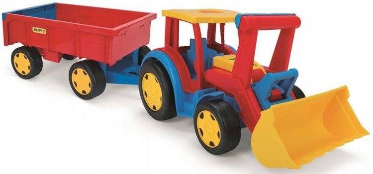 ✓ большой, массивный тракторный погрузчик (грузоподъемностью до 100 кг) с прицепом (грузоподъемностью до 60 кг) – общая длина техники 117 см