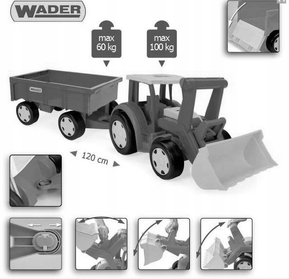 Трактор Wader Gigant з ковшем і причепом - Фермер (66015 + 10915)
