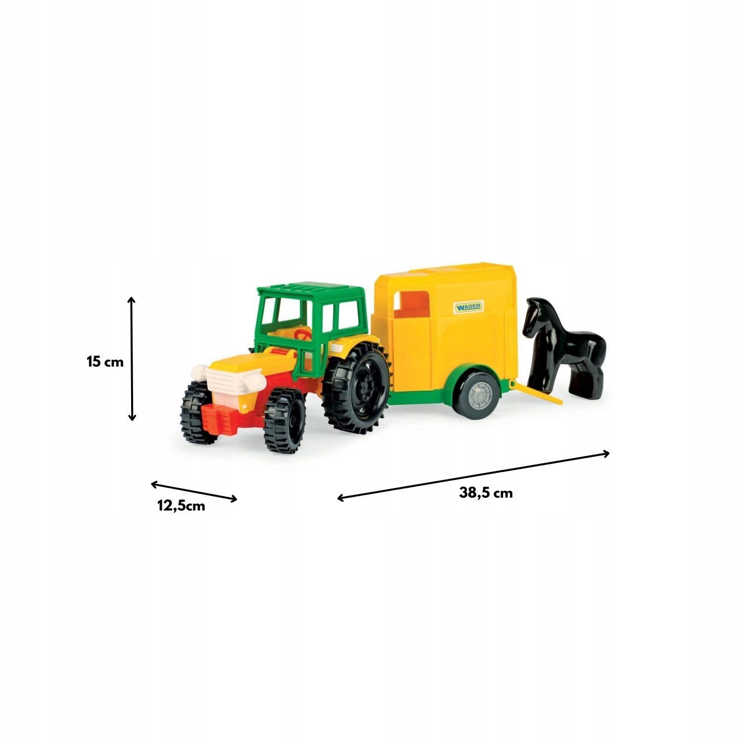 - играть с Трактор и прицеп-лошадка из серии Color Cars от Wader стимулирует творческие способности и воображение ребенка, совершенствует его мануальные и моторные навыки, развивает зрительно-моторную координацию, углубляет знания и удовлетворяет потребность в познании мира, поддерживает интеграцию со сверстниками.