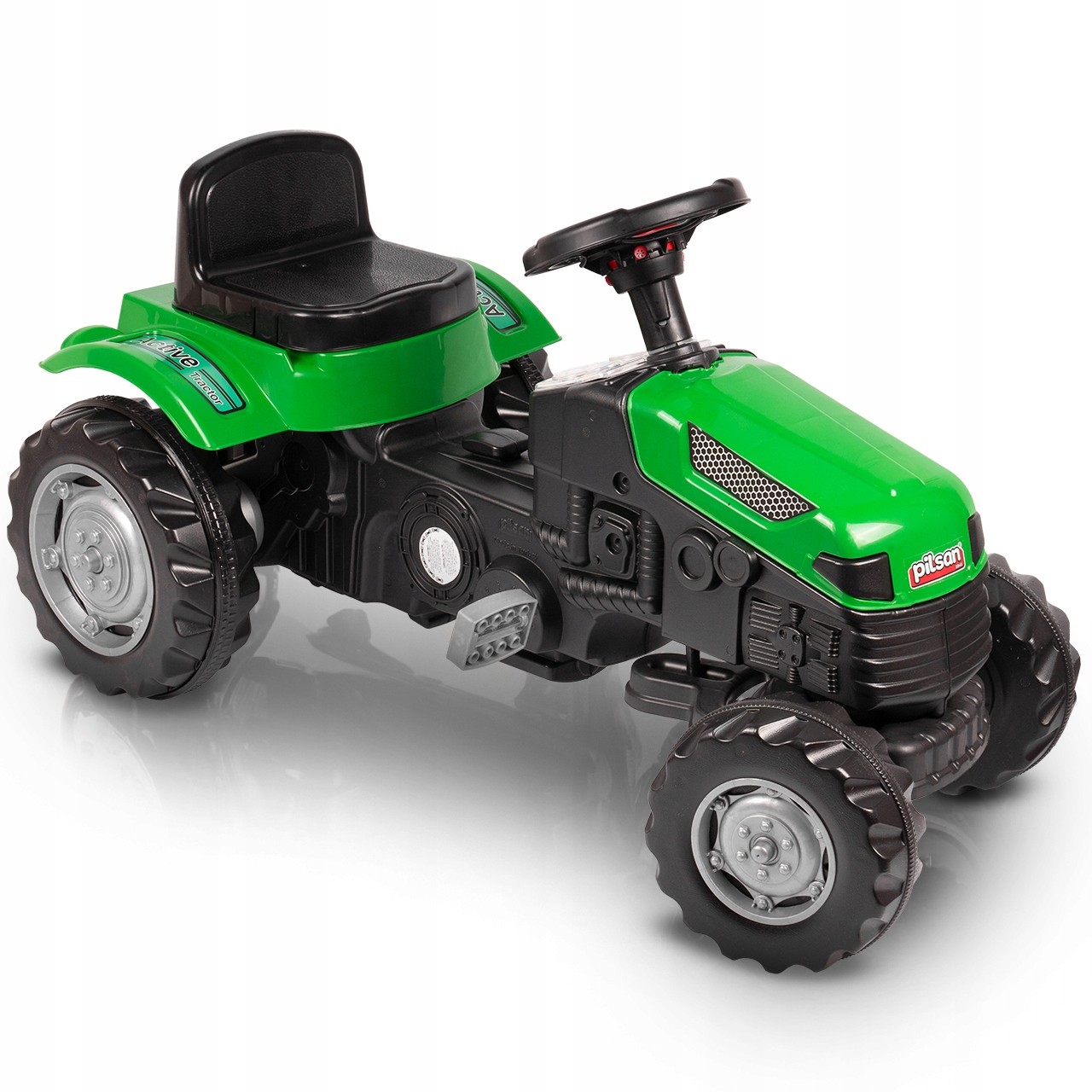 Каракат Pilsan в форме трактора – идеальный выбор для каждого мальчика, который любит играть на свежем воздухе. Такая игрушка сможет развить воображение ребенка. Трактор имеет педали и подъемный ковш. Сиденье на тракторе регулируется. Ребенок сможет управлять трактором вперед и назад.