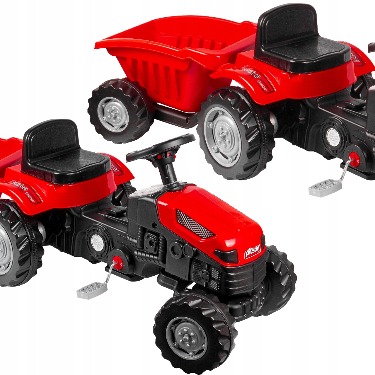Отличная, большая игрушка от известной компании Pilsan – педальный трактор с прицепом – идеальный подарок юному фермеру или садоводу :)