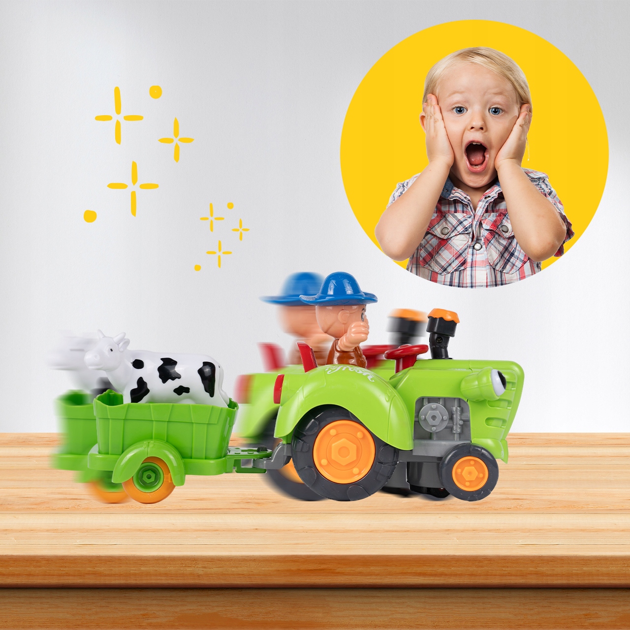 - Трактор имеет трейлер, на котором мы можем поставить фигурку коровь