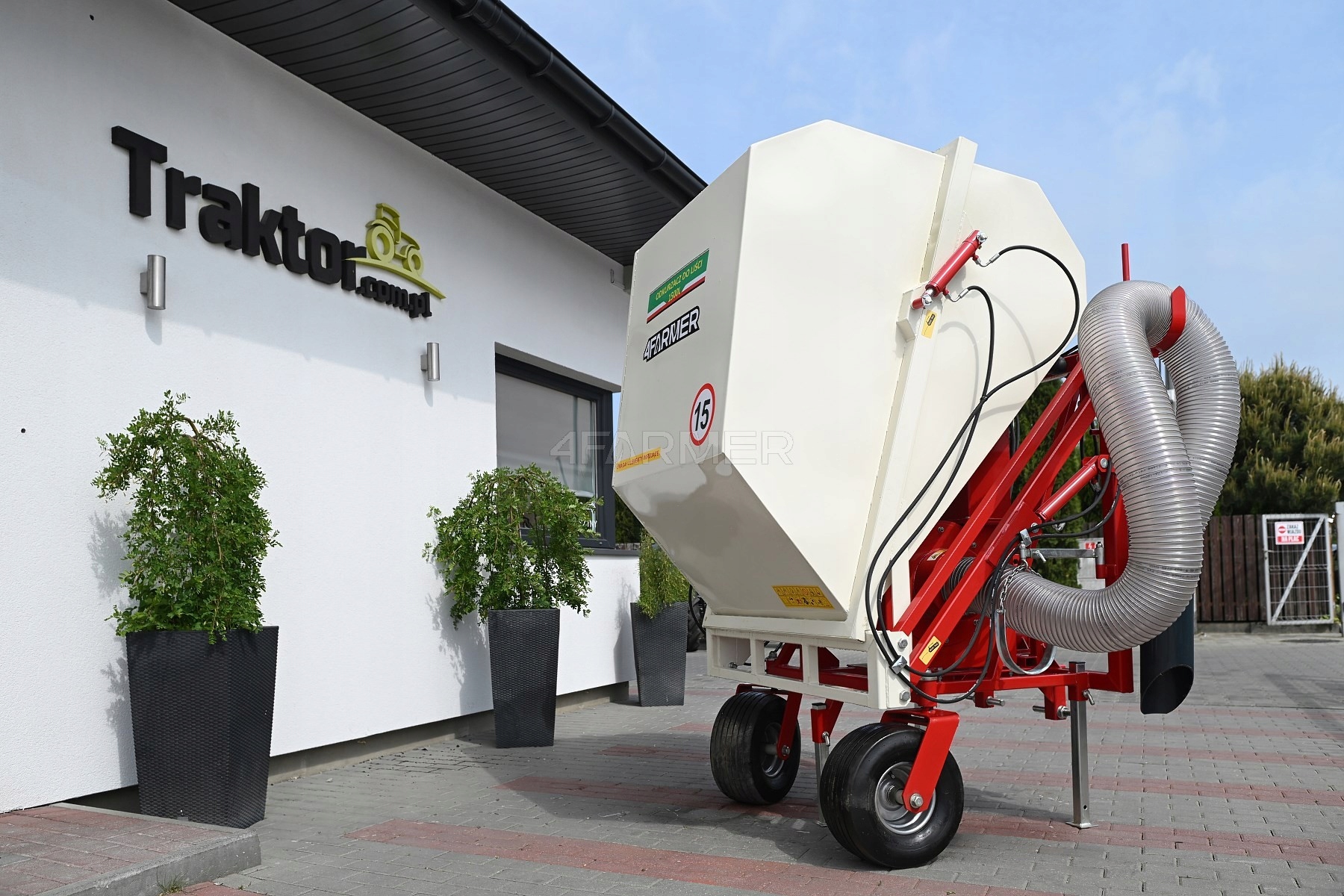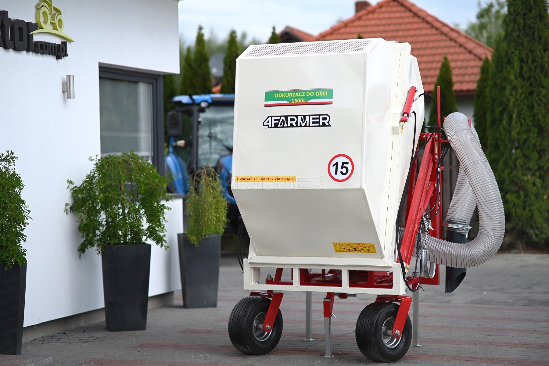 The company TRAKOR_COM_PL offers: H2> A tractor vacuum cleaner for leaves 1500l 4farmer h1>