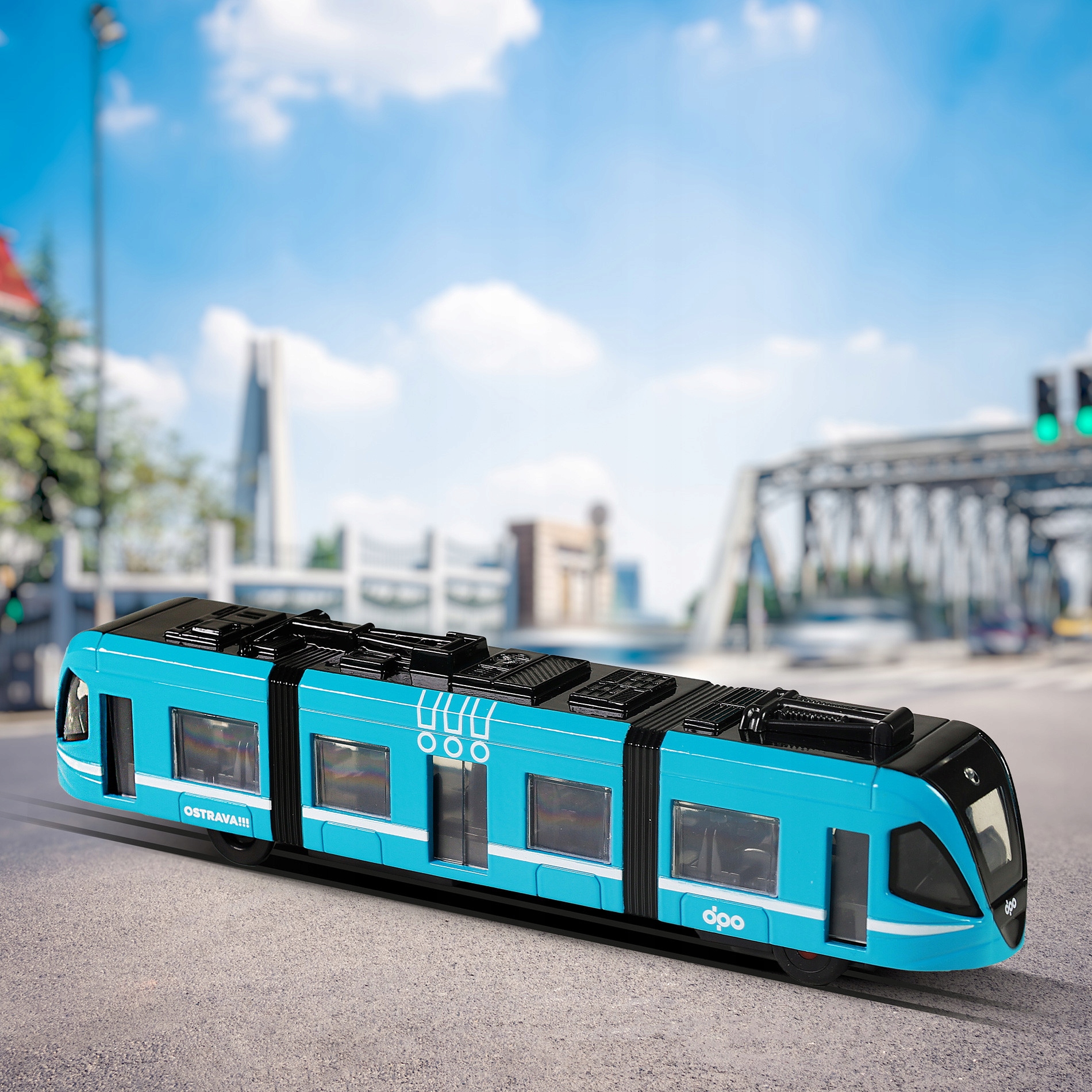 TRAMWAJ NIEBIESKI CZESKI METALOWY TRAMWAJ OSTRAVA