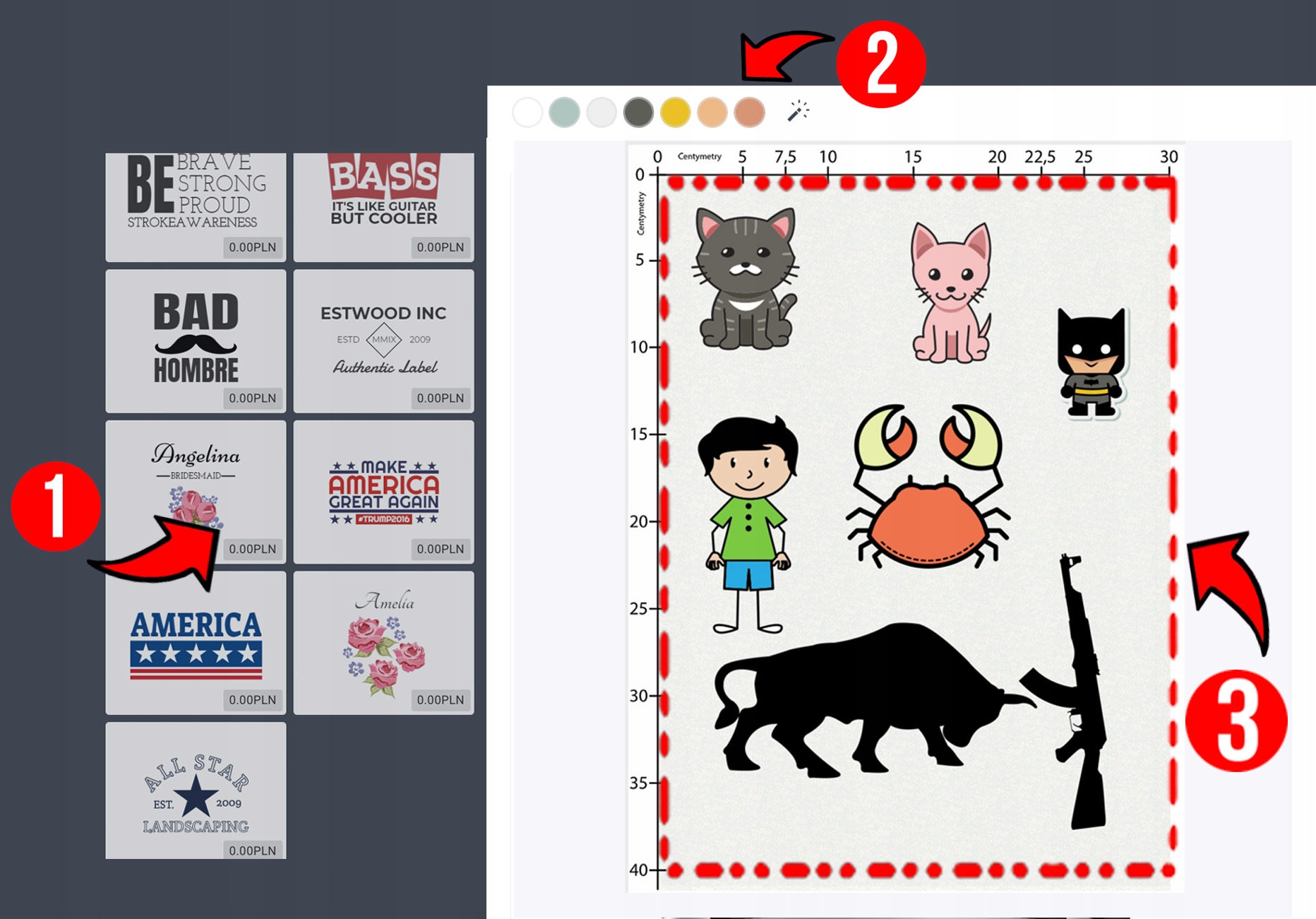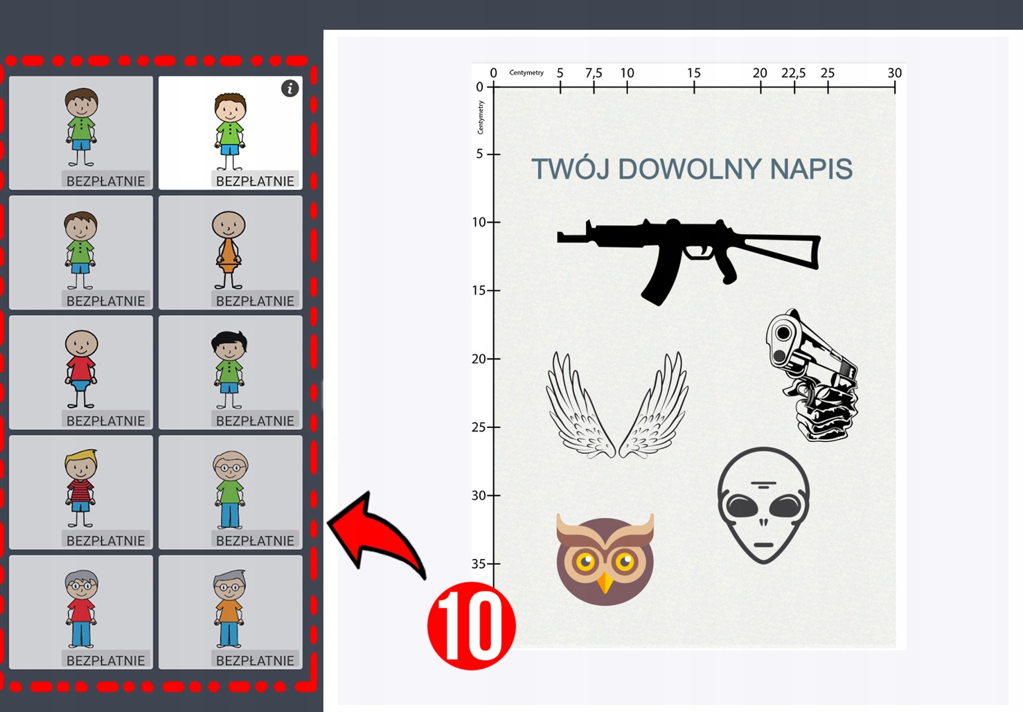 1️⃣ (1) - Вы будете выбирать графику из нашей базы данных, так называемую клипарт (на любой случай вы найдете здесь забавную графику, людей, фигуры, животных, автомобили, здания и множество другой графики, которую мы постоянно добавляем