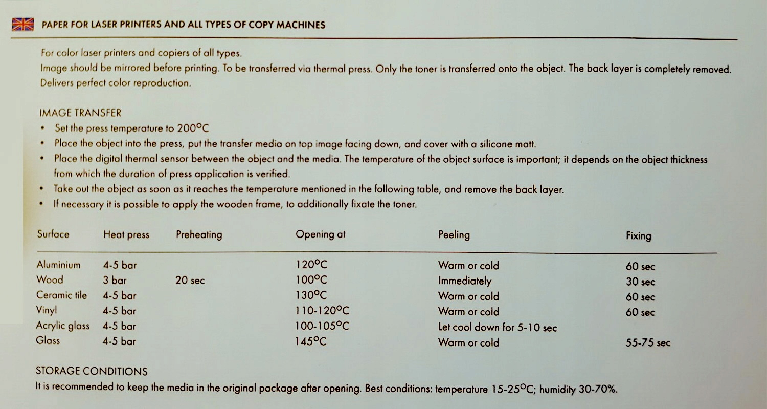 Термотрансферная бумага Lomond 0807435 предназначена для полноцветной печати на твердых поверхностях, например, металл, дерево, стекло, керамика и т. д. Для всех типов цветных лазерных принтеров (нельзя использовать струйные принтеры).