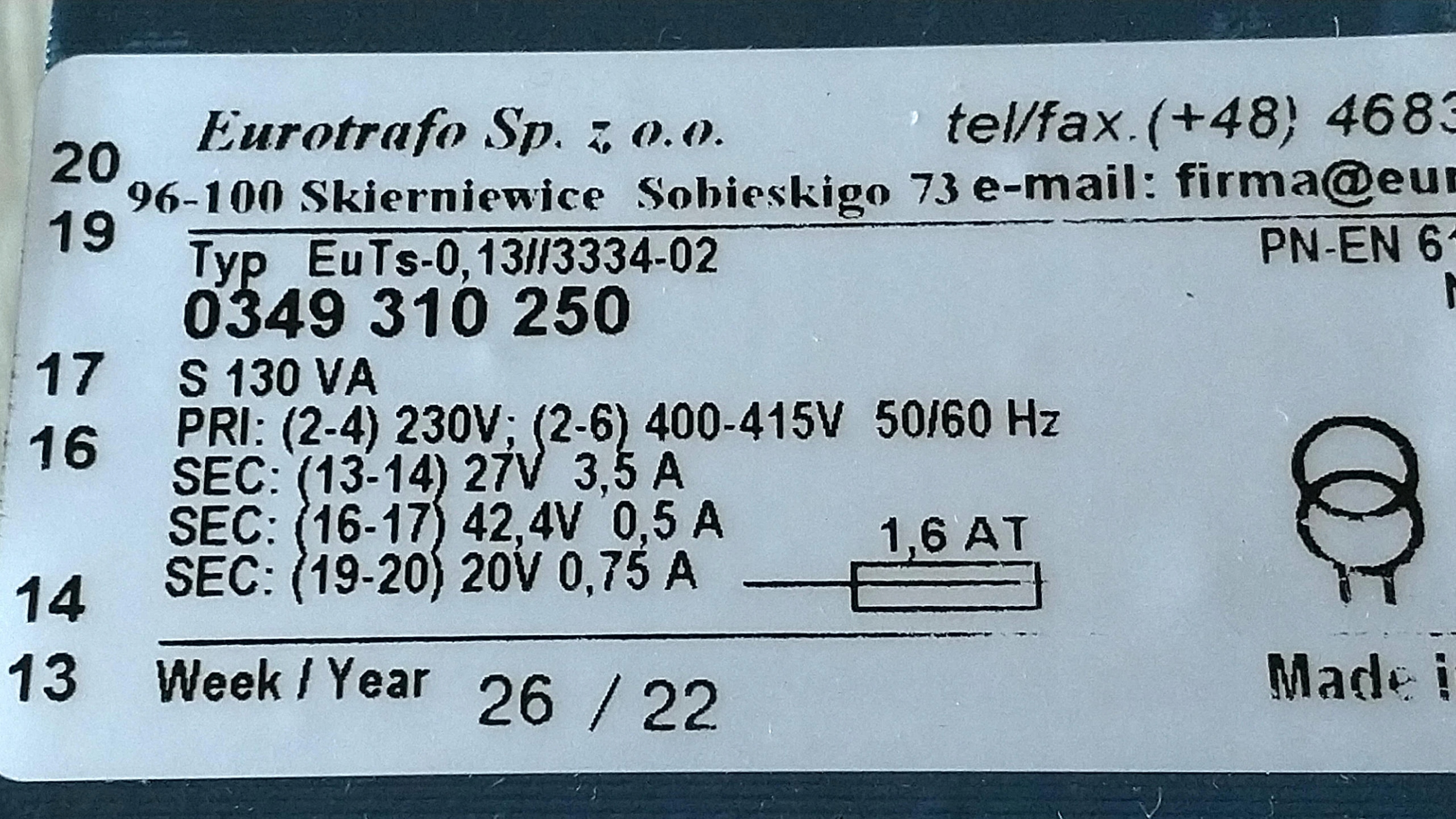 Трансформатор управления ESAB OZAS TS-130/3334 migomat