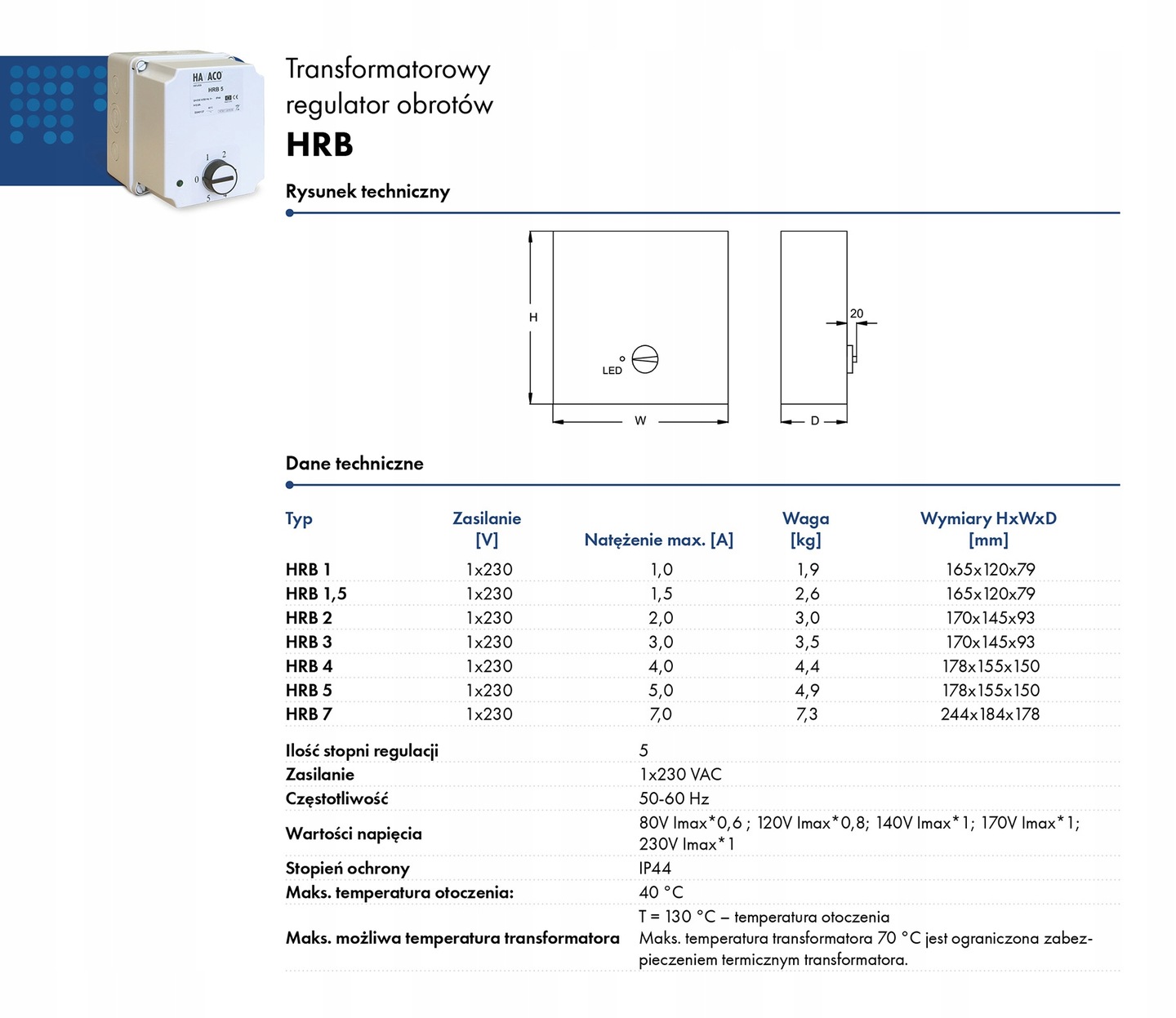 Transformatorowy regulator obrotów HRB 7,0 HAVACO