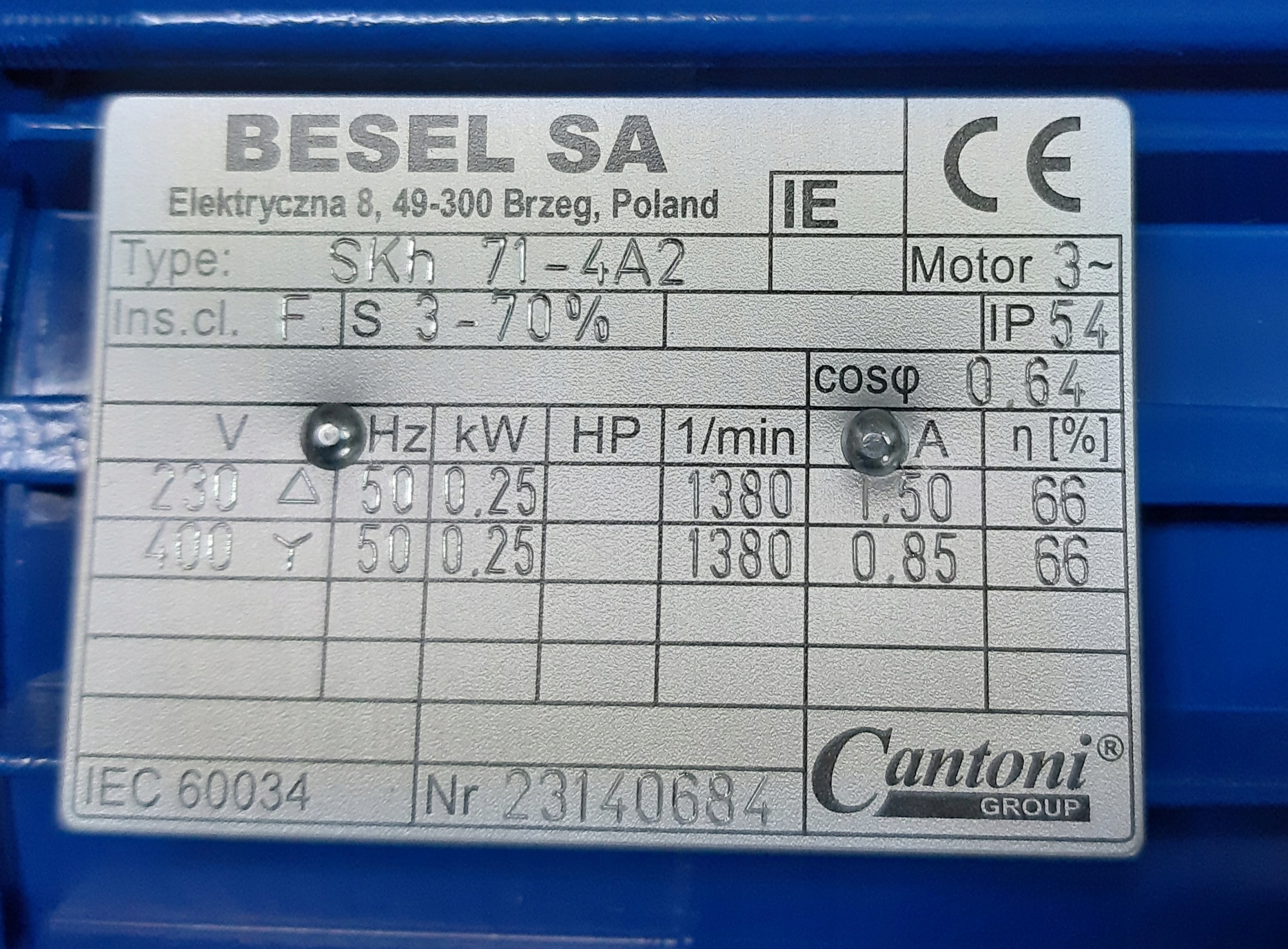 Трансмісія Двигун BESEL 0,25 кВт 46 об/хв