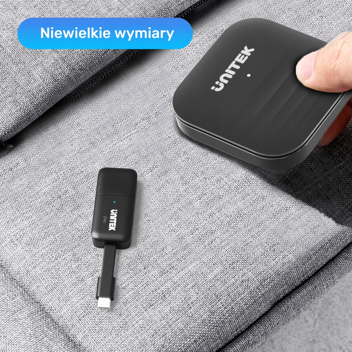Как отправить со смартфона, ноутбука или компьютера с портом USB-C на телевизор, проектор или монитор без использования кабеля? Все просто: все, что вам нужно, это Unitek V1184A01, беспроводной передатчик HDMI с радиусом действия 50 м! Этот передатчик будет хорошо работать как при проведении презентаций, так и в домашнем кинотеатре, в офисе и даже в системах мониторинга. Это гораздо удобнее, чем подключаться к устройствам с помощью кабеля, особенно если на вашем ноутбуке или телефоне нет порта HDMI!