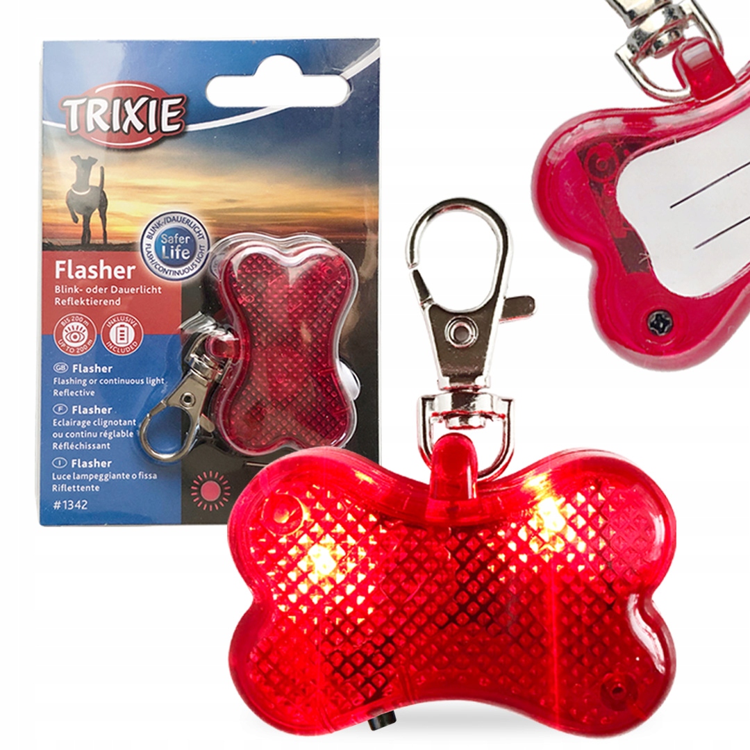 Сияющий кулон для Trixie Dogs изготовлен из пластика с двумя светодиодными фонарями. Это также адрес - с другой стороны, есть место, где можно ввести контактные данные. Аккумулятор -Дерепие имеет два режима освещения: мигающий и непрерывный. Подвесный свет видим на расстоянии до 200 метров.