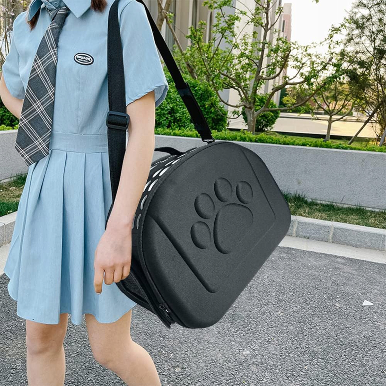 - носить ремень и складной транспортер - регулируемый носительный стержень на плече с возможностью полностью отцездовать сумку, а также эргономичную ручку для удобного транспорта . Пешок облегчает использование. Дополнительные удобные zip -крепежные элементы , расположенные на передней и 2 сторонах транспортера, упрощают вход и выход животного. Сумка складывается к небольшим размерам, благодаря которой его хранилище очень простое