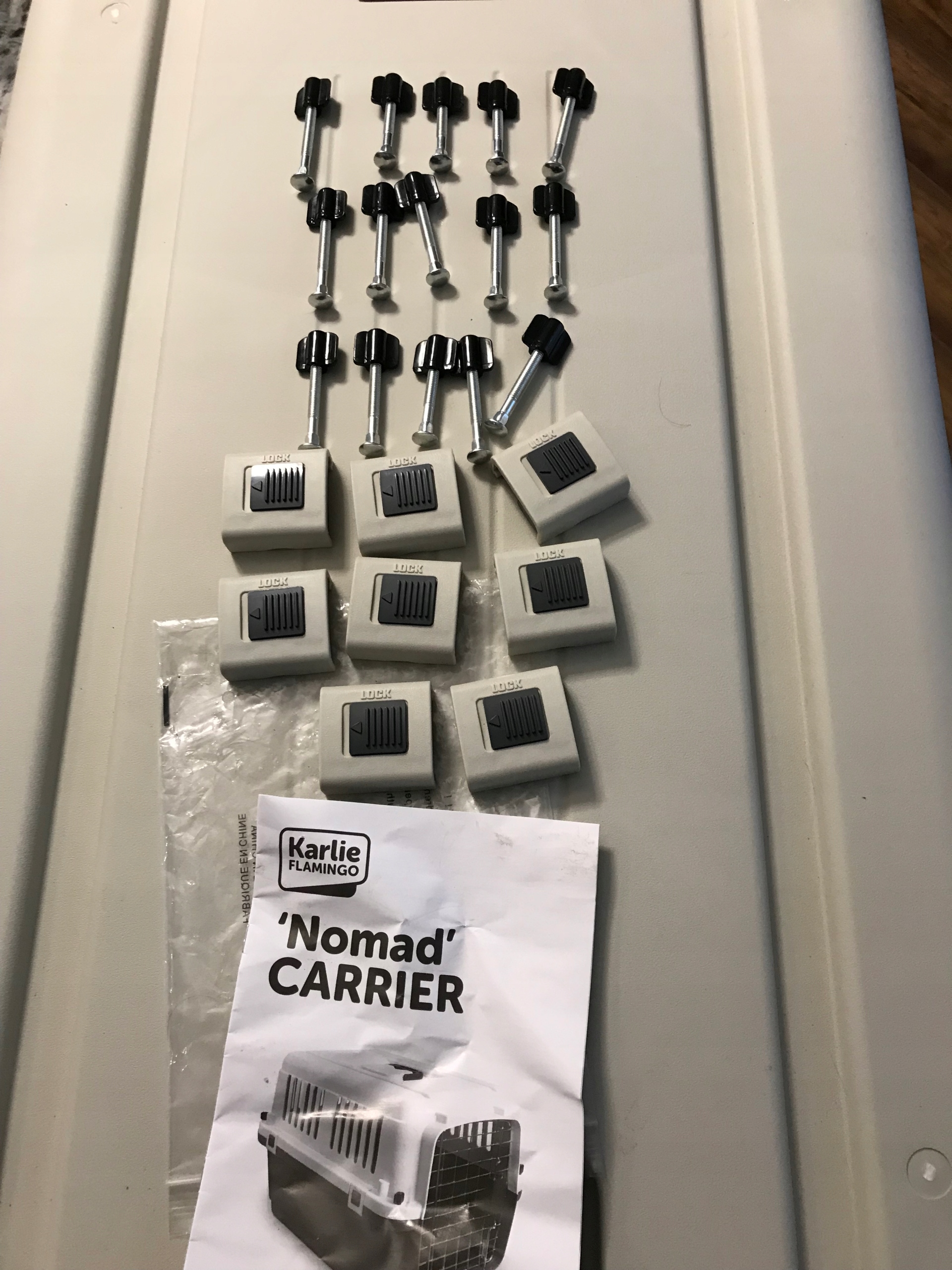 Transporter имеет все элементы (чаша, крючки, винты, стержни, стержни, двери, колеса)