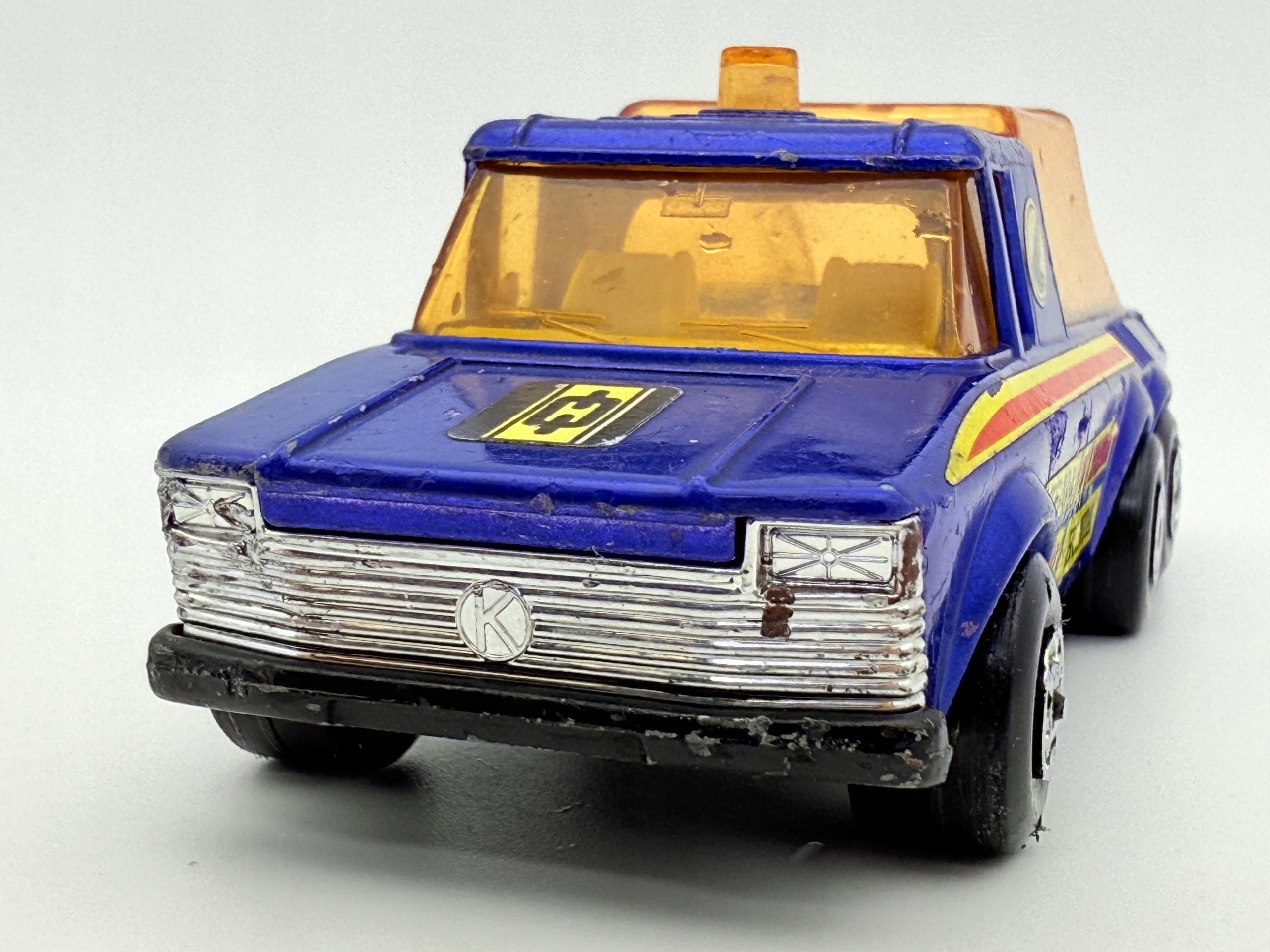 Pickup Prescr от Lesney Products-интересная модель, которая привлекает внимание своими цветами. Синее тело с желтыми и красными деталями дает ему спортивный характер. Модель была изготовлена из металла и пластика, что обеспечивает ее с адекватным весом и долговечностью. Открытие задней двери и освещения крыши - это дополнительные функции, которые повышают ее привлекательность для коллекционеров. Несмотря на видимые признаки использования, пружина сохраняет свое очарование и может быть отличным дополнением к любой коллекции.