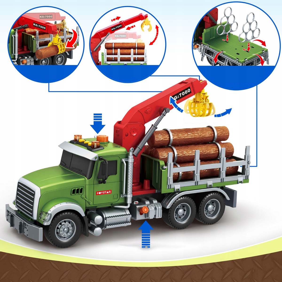🏡 Большой транспортер с 6 кусочками дерева с реалистичными звуками, огнями, захватом, идеальным подарком ›