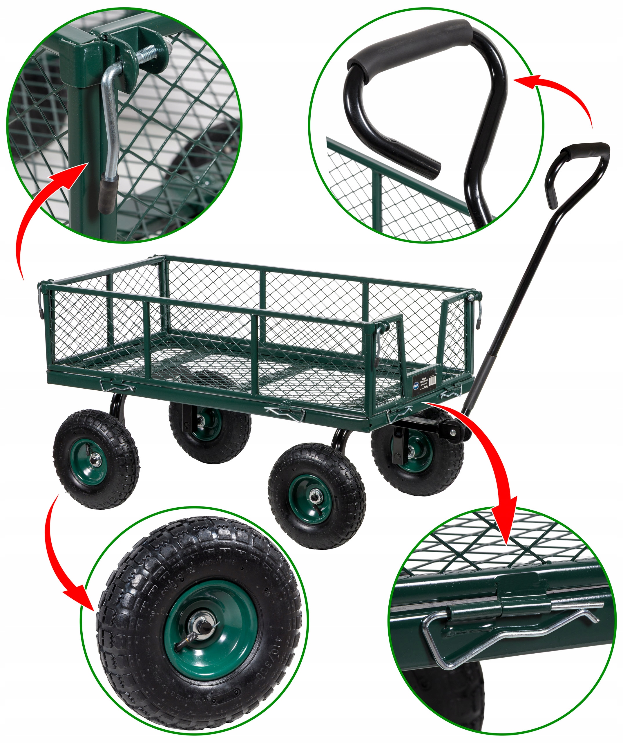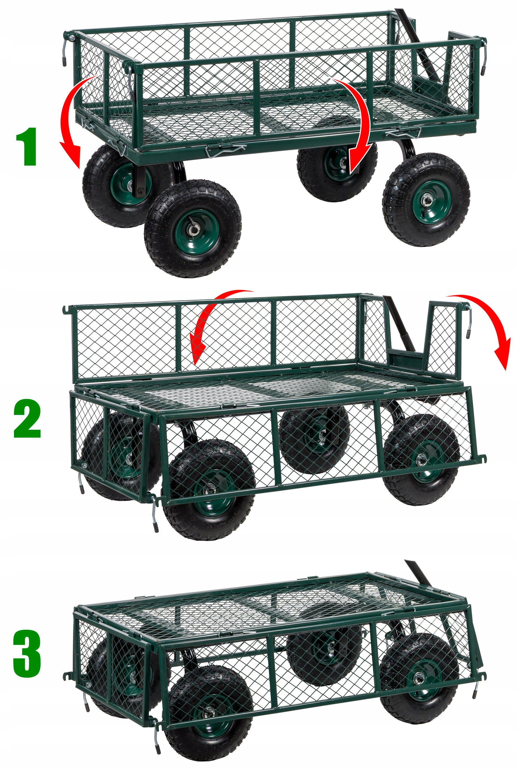 Сбор листьев, травы, ветви? Или, может быть, мобильный рабочий стол во время посадки? СЛАДКО -УТАЯ СТОРОНА Разрешить быстрое загрузку и разгрузку, адаптируя коляску к вашим потребностям.