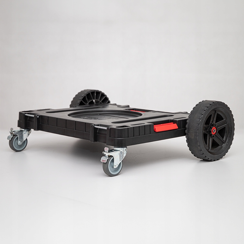 Вездеходная транспортная платформалегко преодолевает препятствия на местности благодаря двум большим 9-дюймовым обрезиненным колесам и двум поворотным колесам с тормозами. Имеет три полиамидных разъема для подключения к модулям системы ONE и удобную ступеньку для маневрирования.