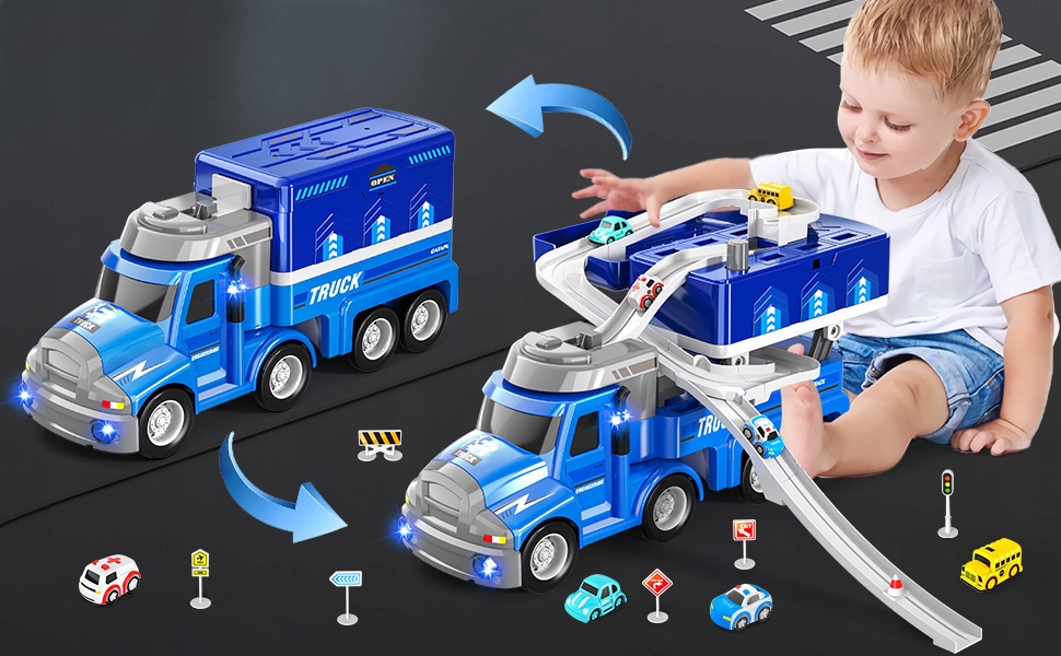 - 💙 Просто протолкните большой транспортер и мини -транспортные средства вперед, и они смогут двигаться. Любопытство и интересы детей и стимулируют их зрение и слух.