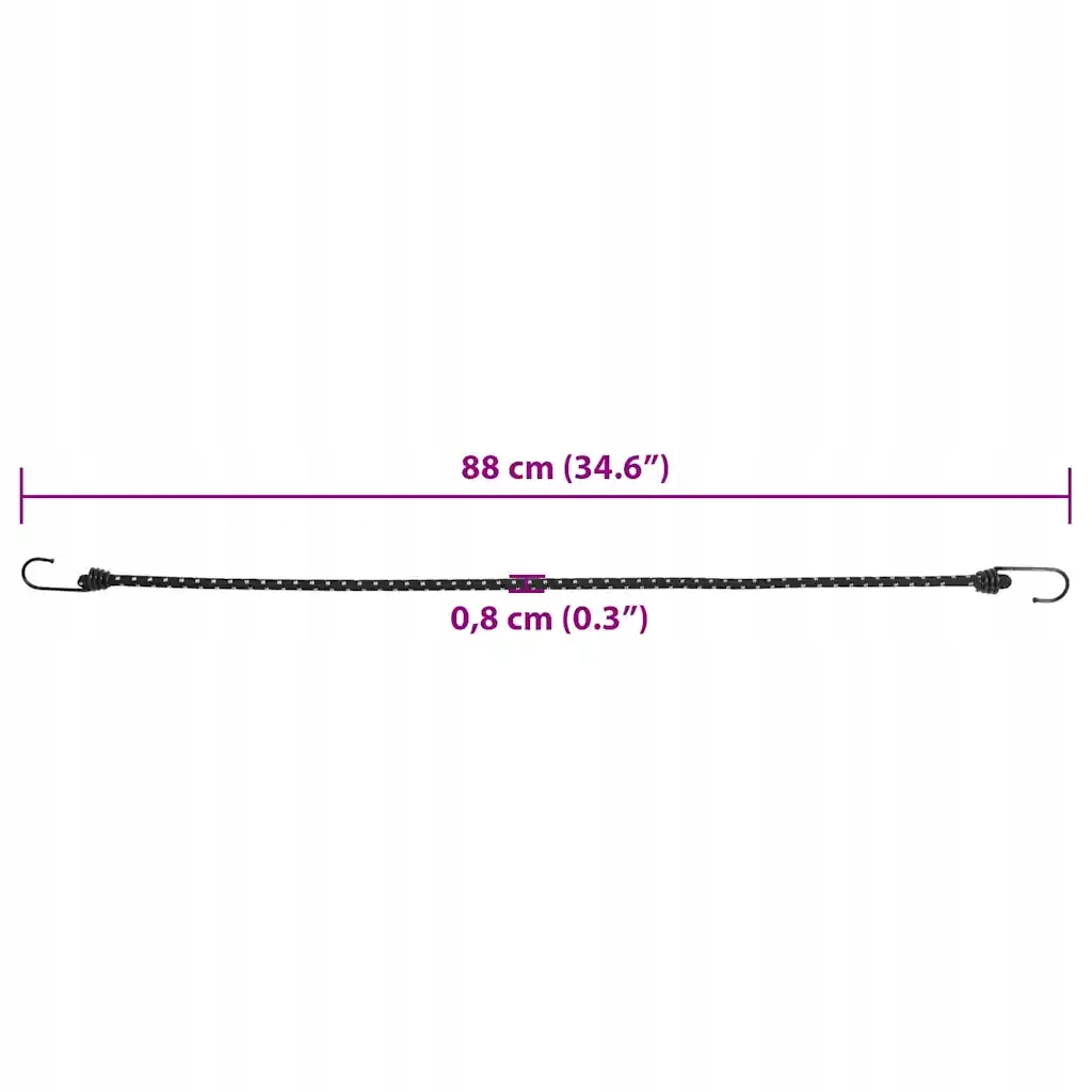 Гибкий кабель с крючками легко надеть и взлететь, благодаря тому, что он будет идеальным выбором при прикреплении и организации объектов. В результате он обеспечивает превосходную гибкость и износ, благодаря которой он очень долговечен и устойчив к трещинах. Кроме того, это свет, который облегчает его передачу и хранение. Более того, его также можно использовать для прикрепления палаток, брезентов и баннеров, а также дополнительную защиту багажных ремней. Веревки: 8 мм