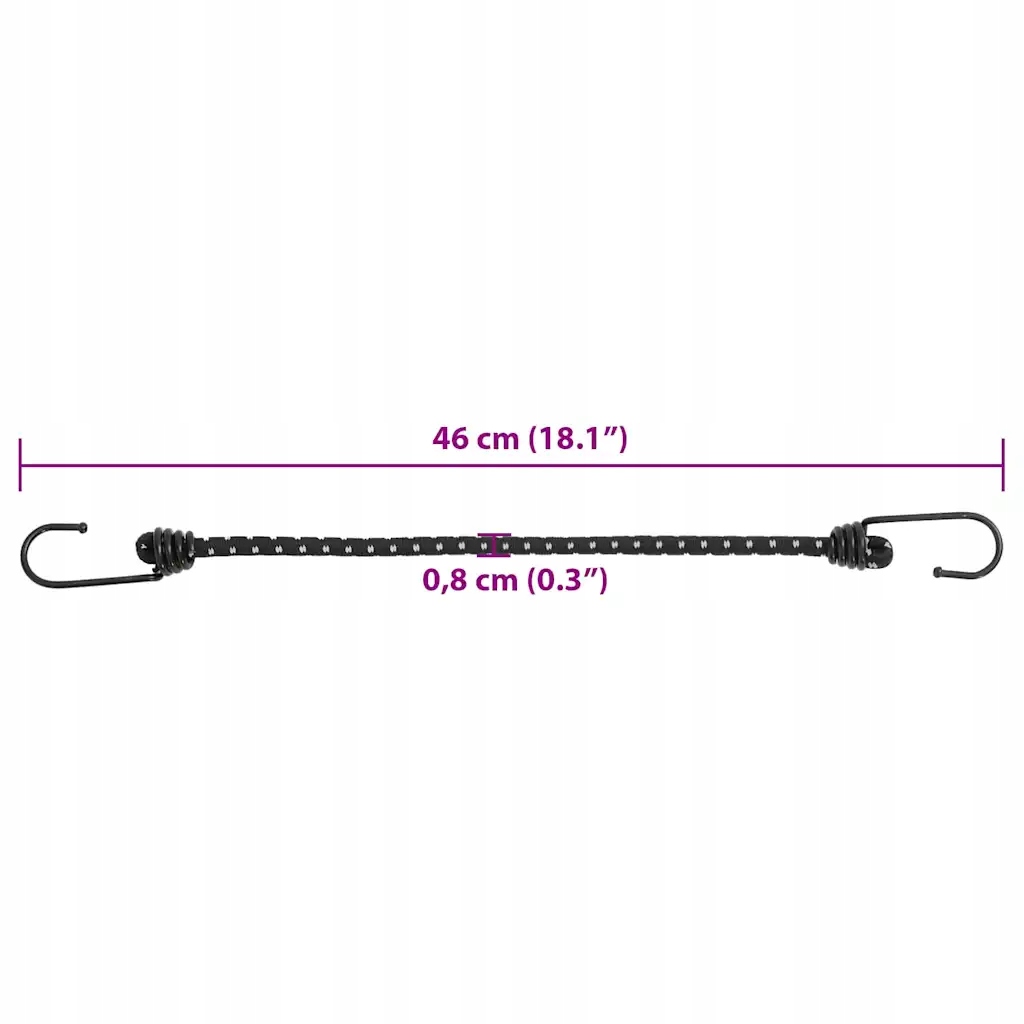 Гибкий кабель с крючками легко надеть и взлететь, благодаря тому, что он будет идеальным выбором при прикреплении и организации объектов. В результате он обеспечивает превосходную гибкость и износ, благодаря которой он очень долговечен и устойчив к трещинах. Кроме того, это свет, который облегчает его передачу и хранение. Более того, его также можно использовать для прикрепления палаток, брезентов и баннеров, а также дополнительную защиту багажных ремней. Веревки: 8 мм